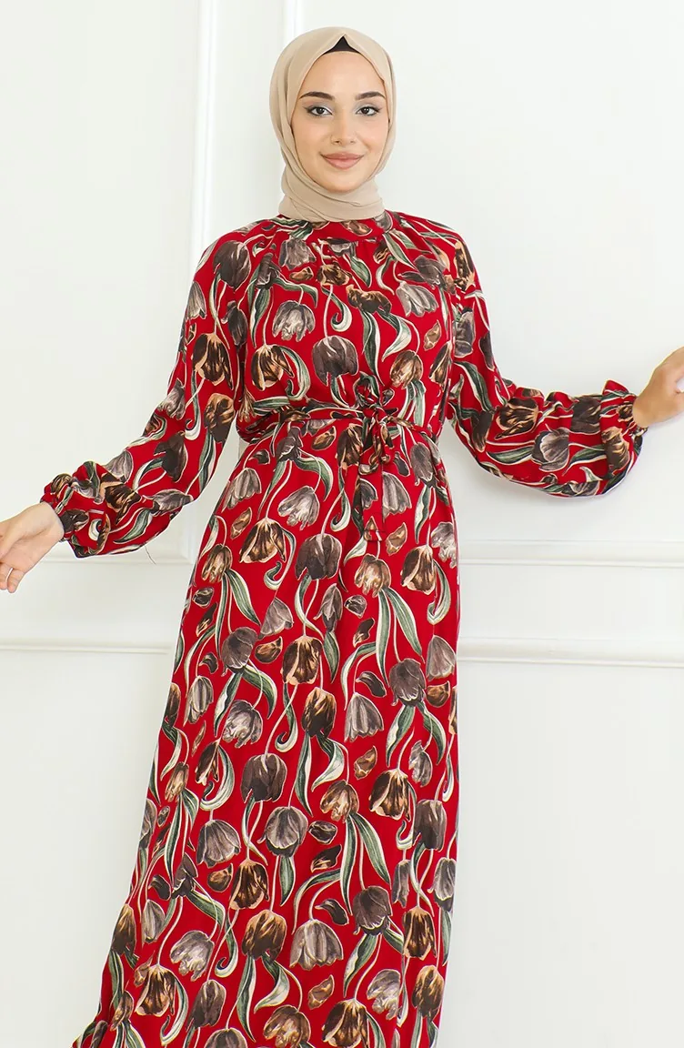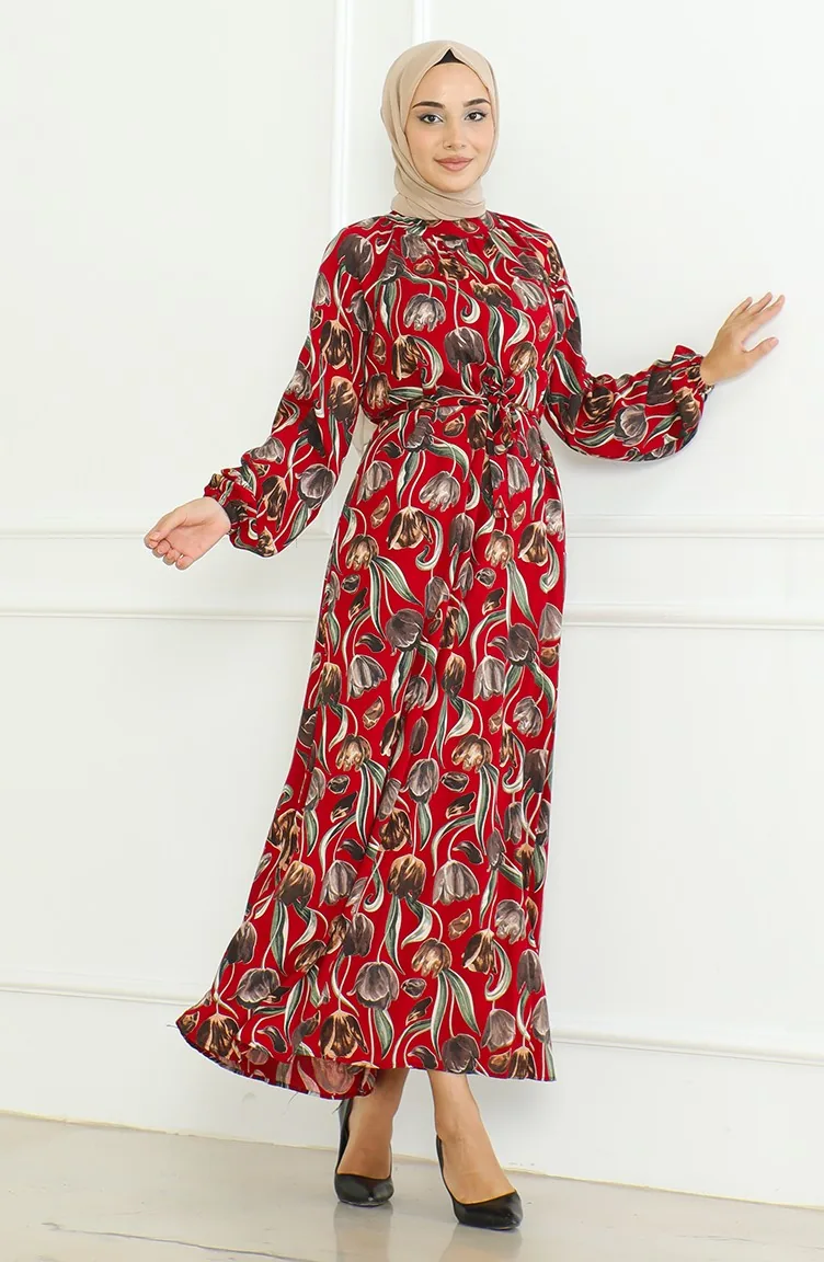 Jurk Met Riem En Patroon 0467-01 Bordeauxrood 0467-01
