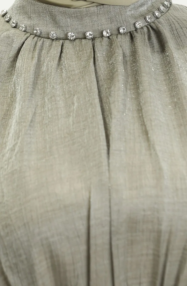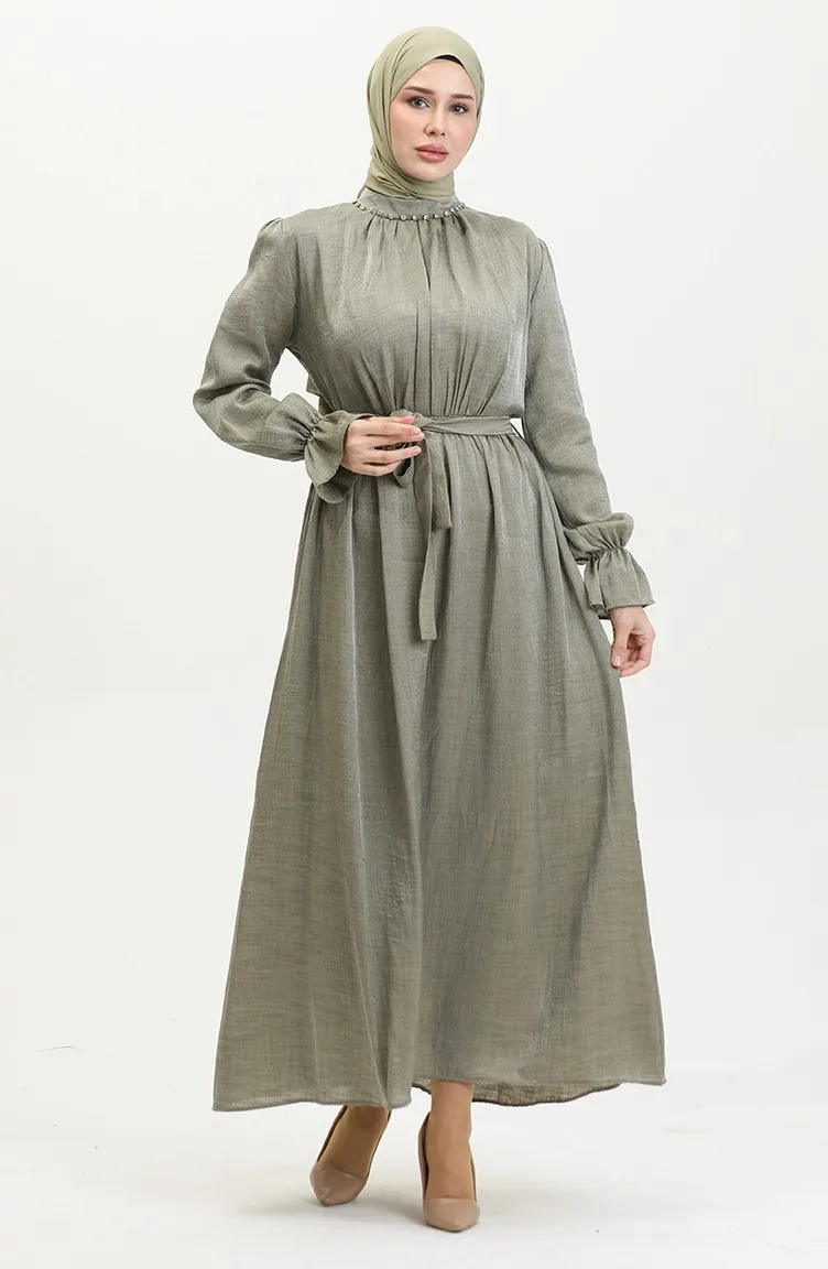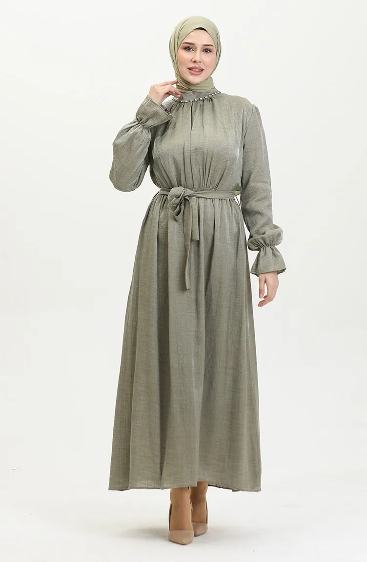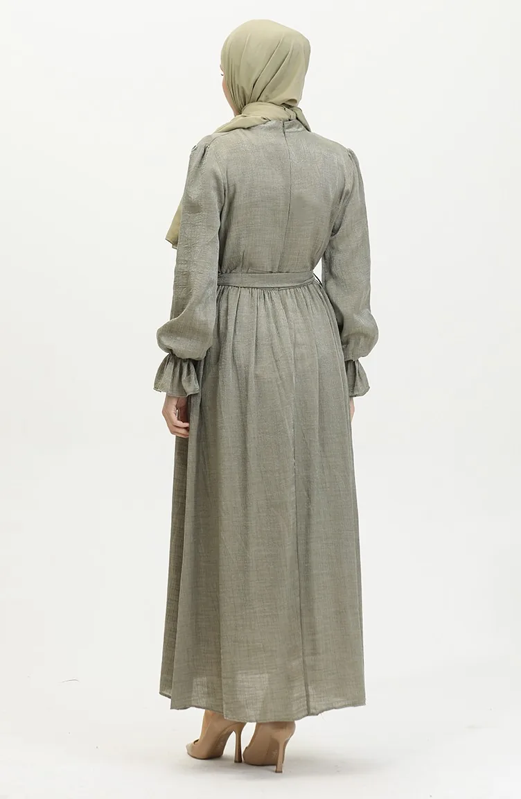 Lurex Linnen Jurk Met Riem 81853-05 Kaki 81853-05
