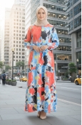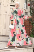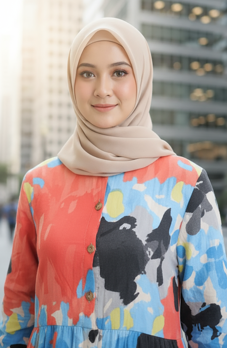 Designed with patterned fabric. Buttons have been used to make it easy to use. It's made of elastic sleeves. Tippet collar is prefered. Suitable for 4 seasons. The size worn by the model, is the one on the image.