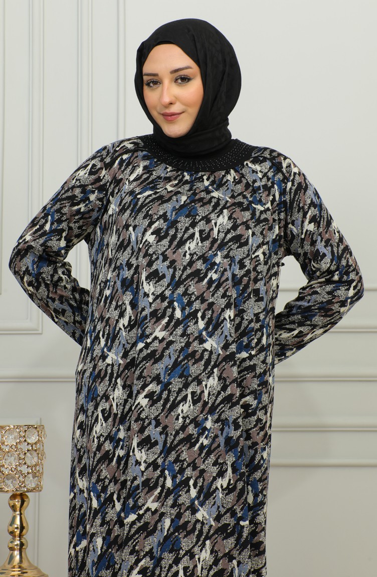 Plus-size Viscose Jurk Met Patroon 4447D-01 Blauw 4447D-01