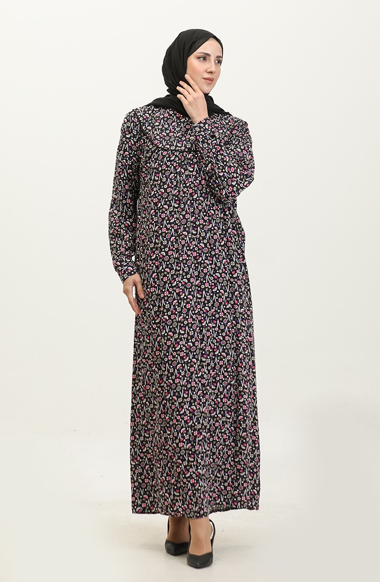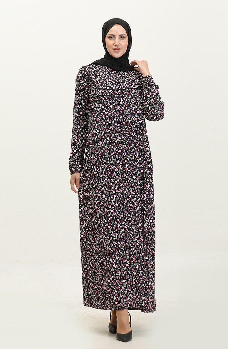 Plus Size Viscose Jurk Met Patroon 4473-04 Zwart Paars 4473-04