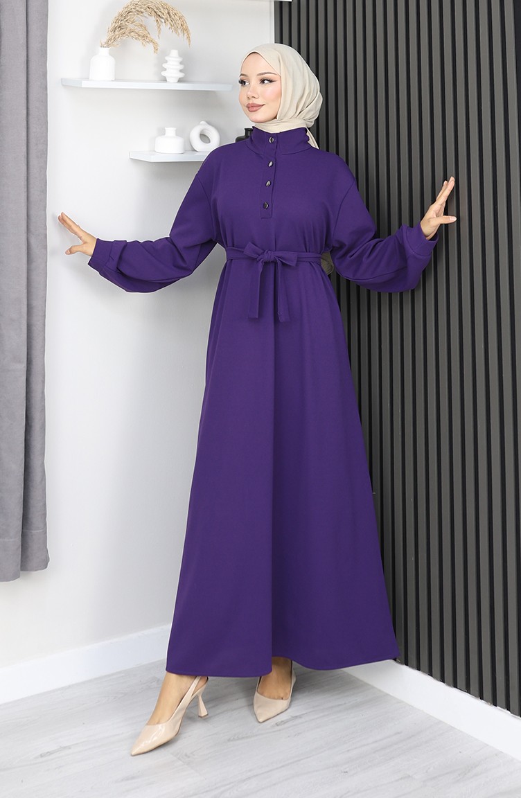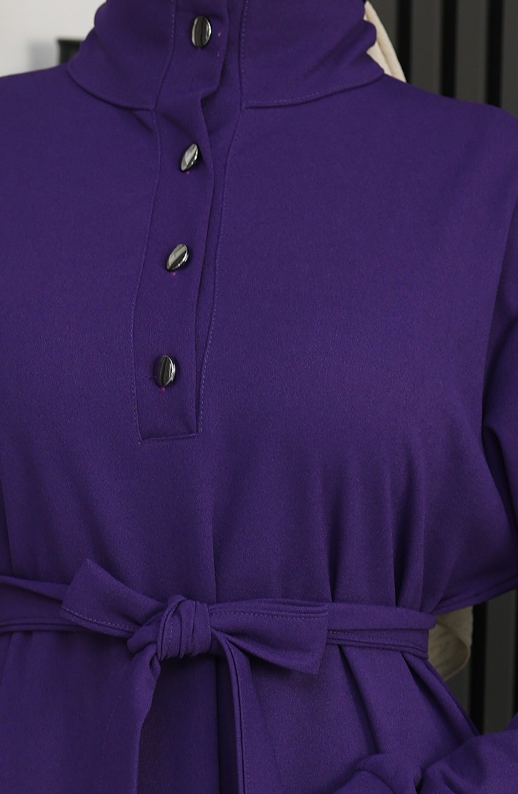 Scuba Fabric Half Button Belted Dress 2167-02 Paars 2167-02