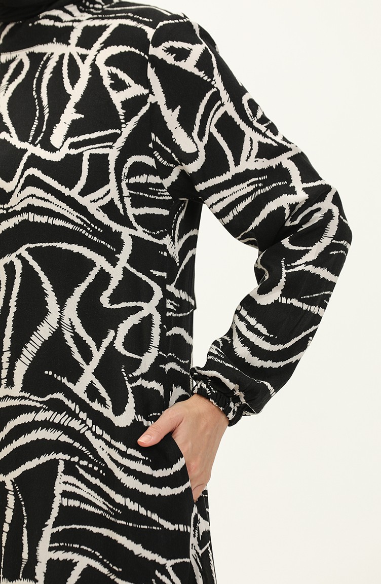 Viscose-jurk Met Patroon 0151-03 Zwart 0151-03