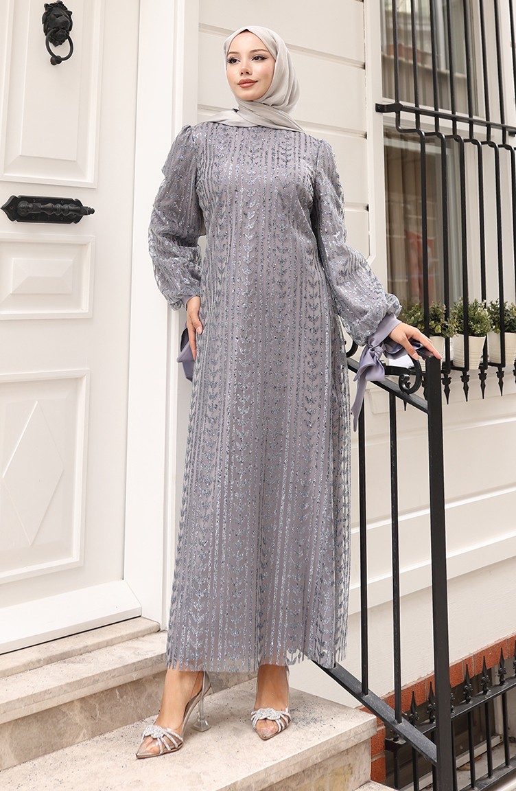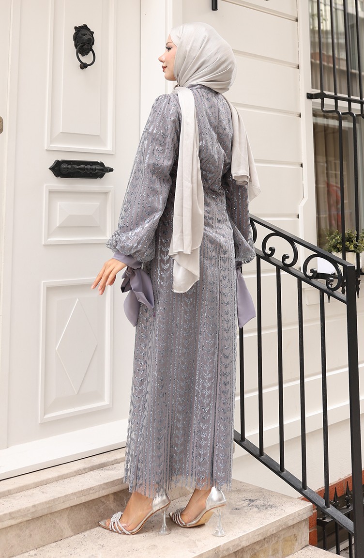 Avondjurk Met Bladmotief En Glittercoating 5612-02 Grijs 5612-02