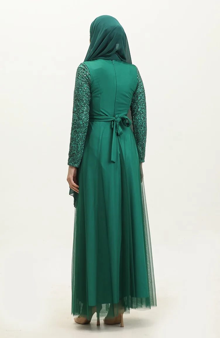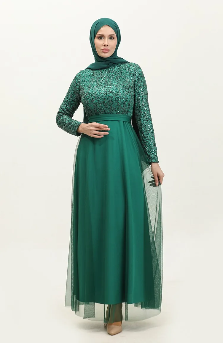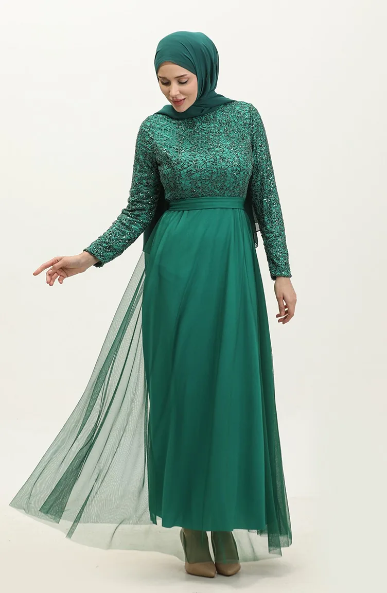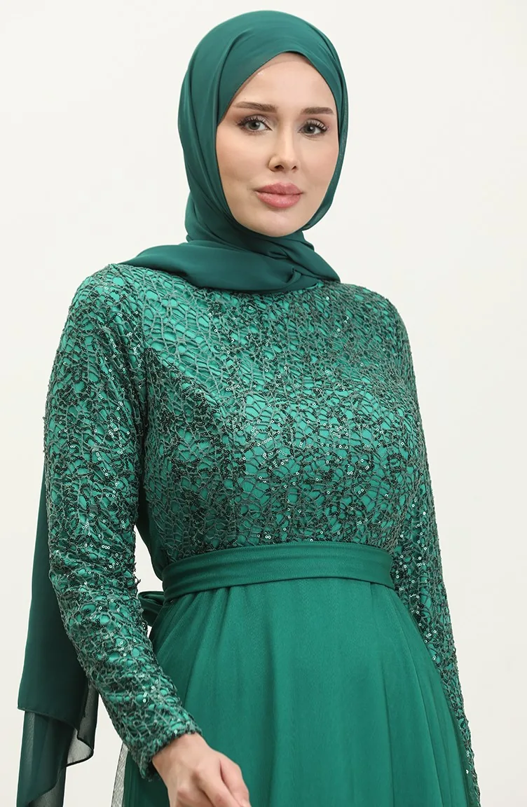 Avondjurk Met Kanten Riem 5353A-03 Smaragdgroen Zwart 5353A-03
