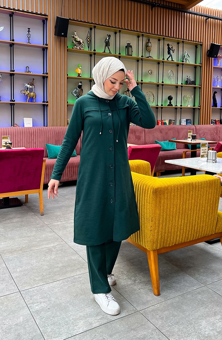 Trainingspak Met Capuchon En Knopen 3072-13 Smaragdgroen 3072-13