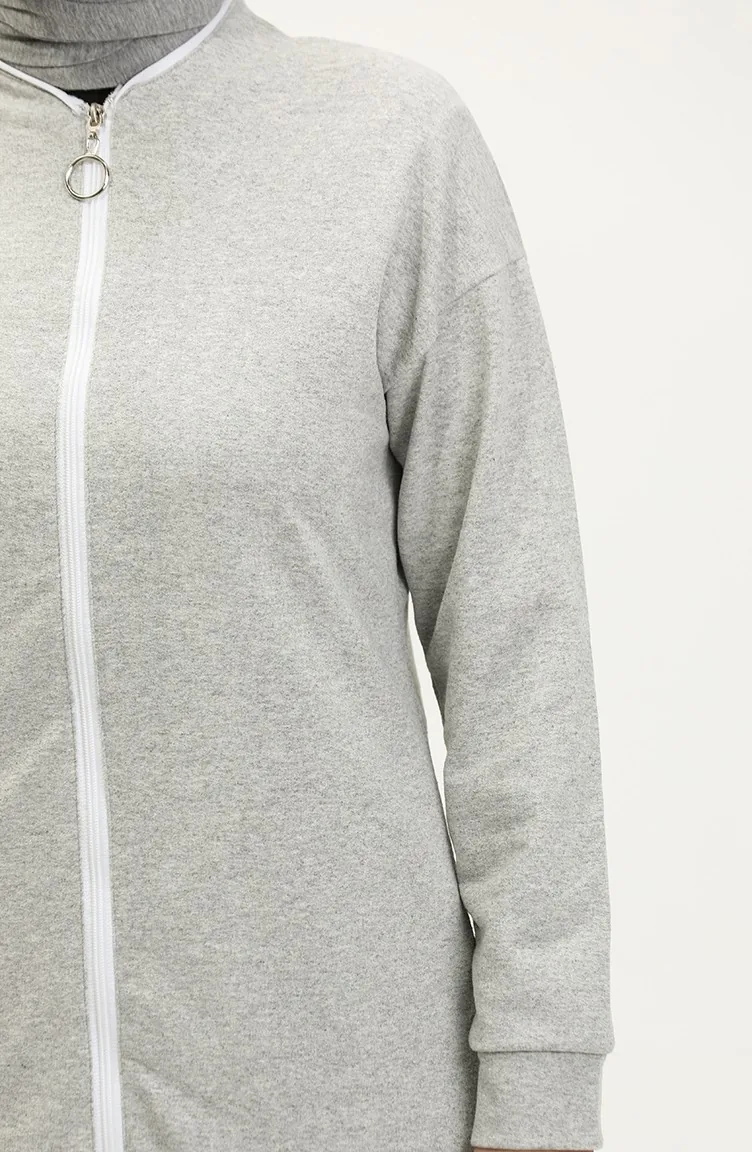 Gray color is used. The cotton fabric has an absorbent texture. It has a plain appearance. The product is used unlined. Long sleeve product. The Zero collar is preferred for all types of clothing. Plus size option available.