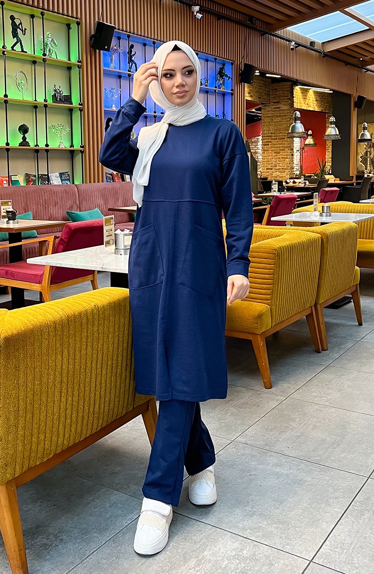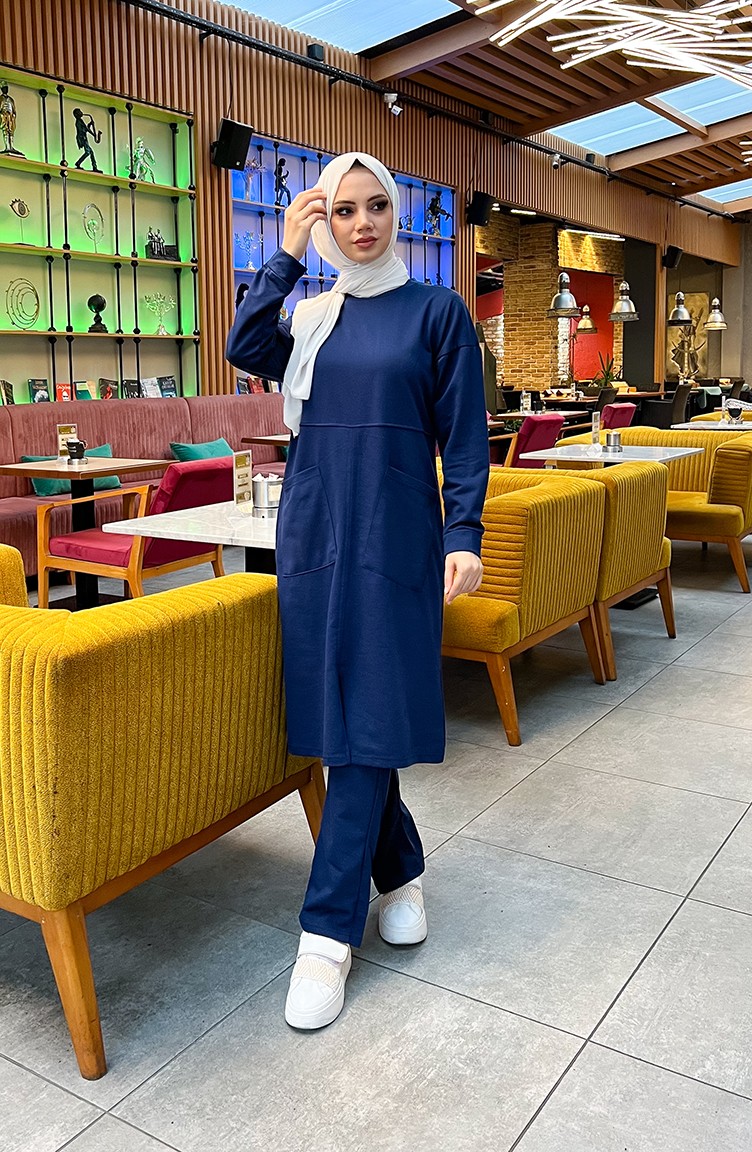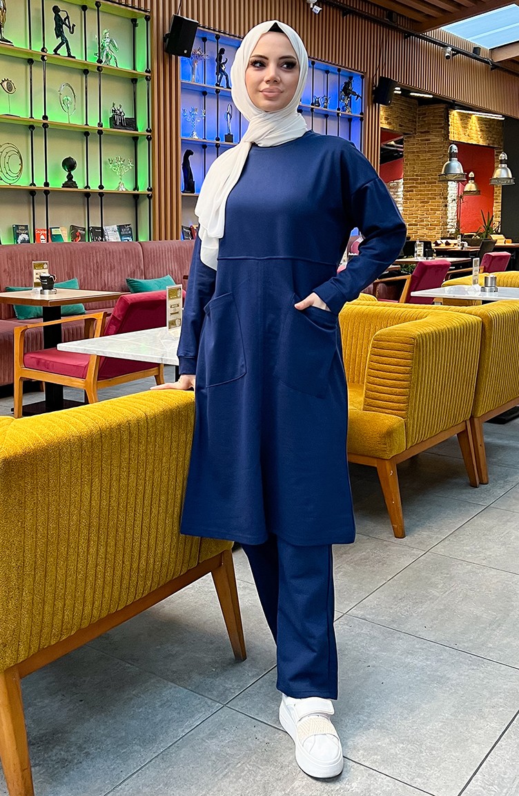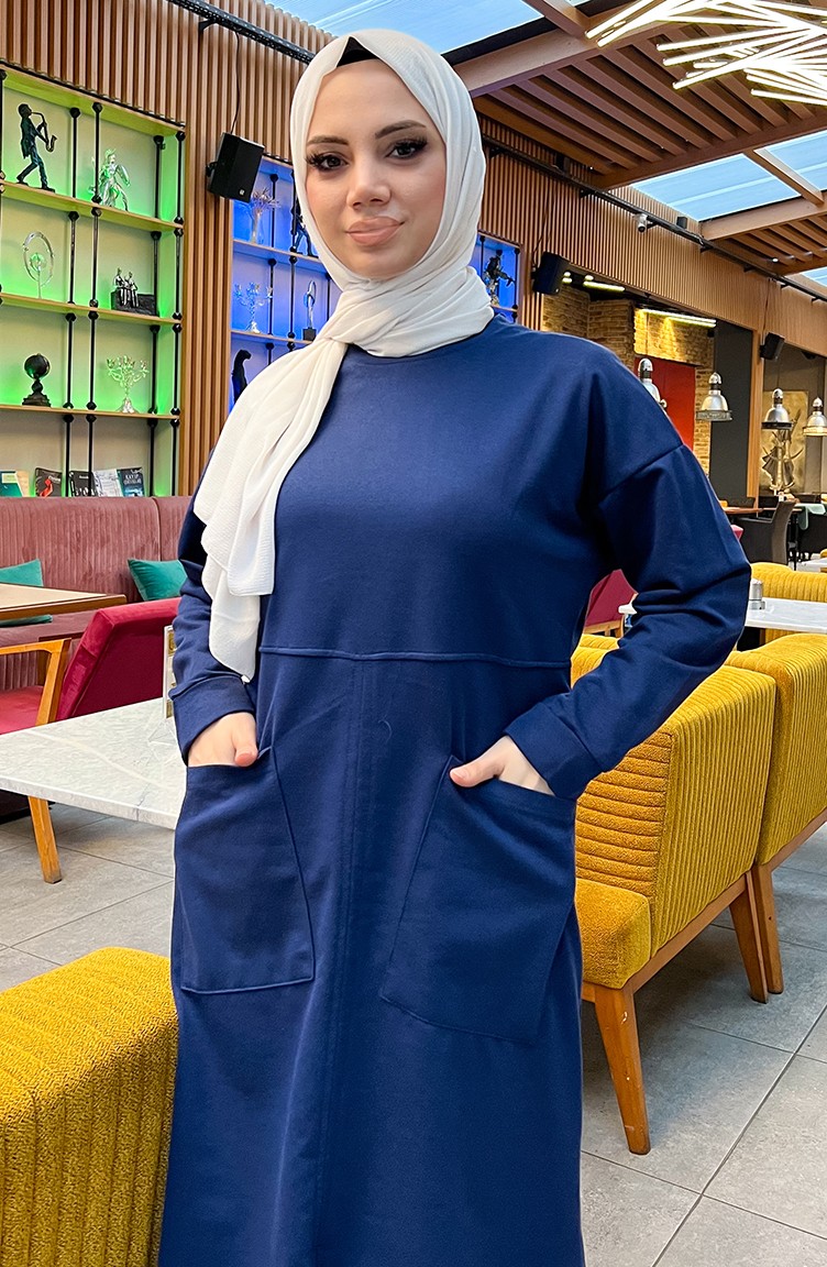 Light Navy Blue color. It has a plain appearance. The product is used unlined. Long sleeve product. The Zero collar is preferred for all types of clothing. Suitable for 4 seasons. Plus size option available.