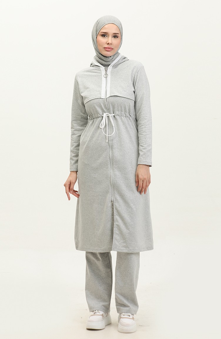 Gray color is used. It has a plain appearance. The product is used unlined. Long sleeve product. Suitable for 4 seasons. Spor. Woman. Plus size option available.