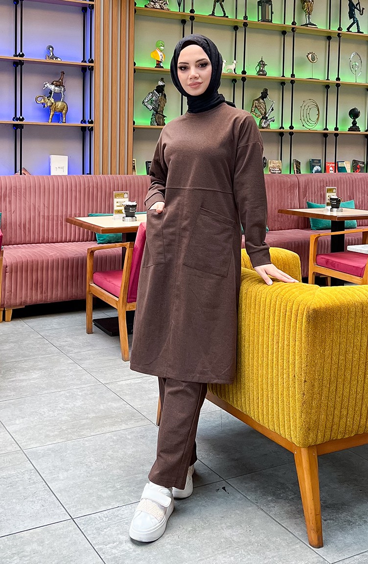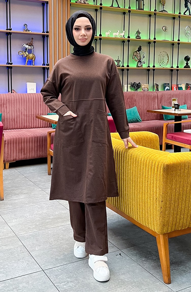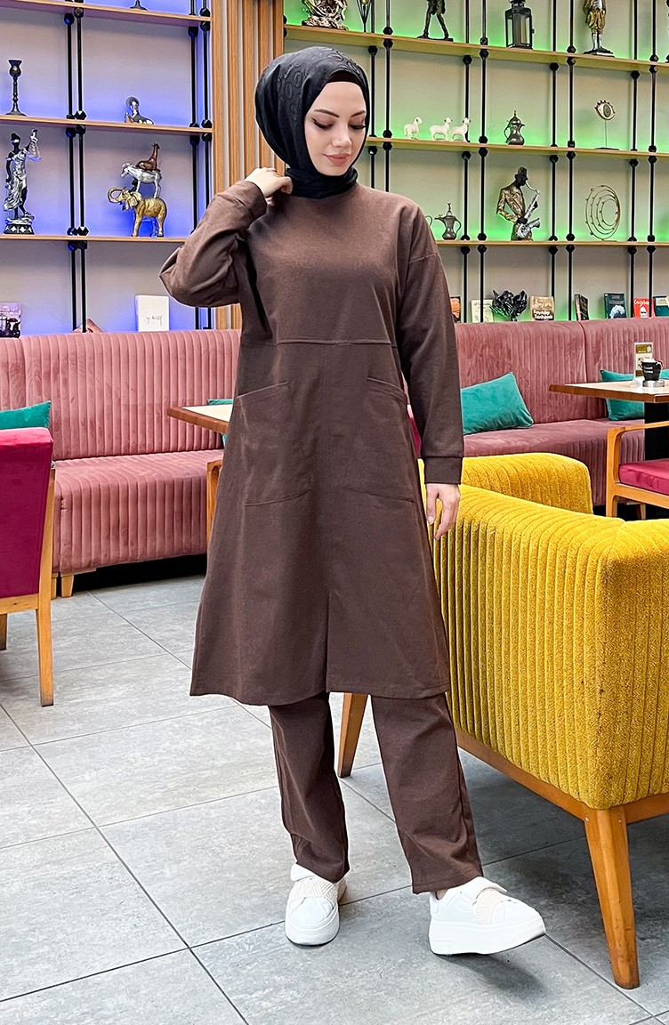 Tweedraads Trainingspak Met Zakken 03067-04 Bruin 03067-04