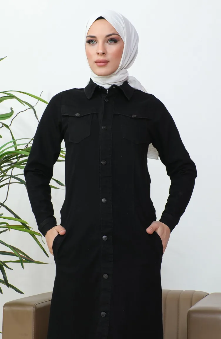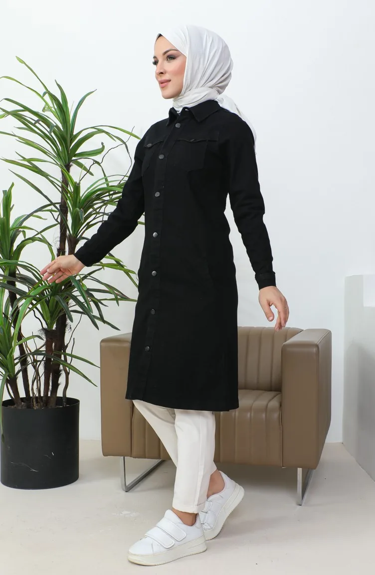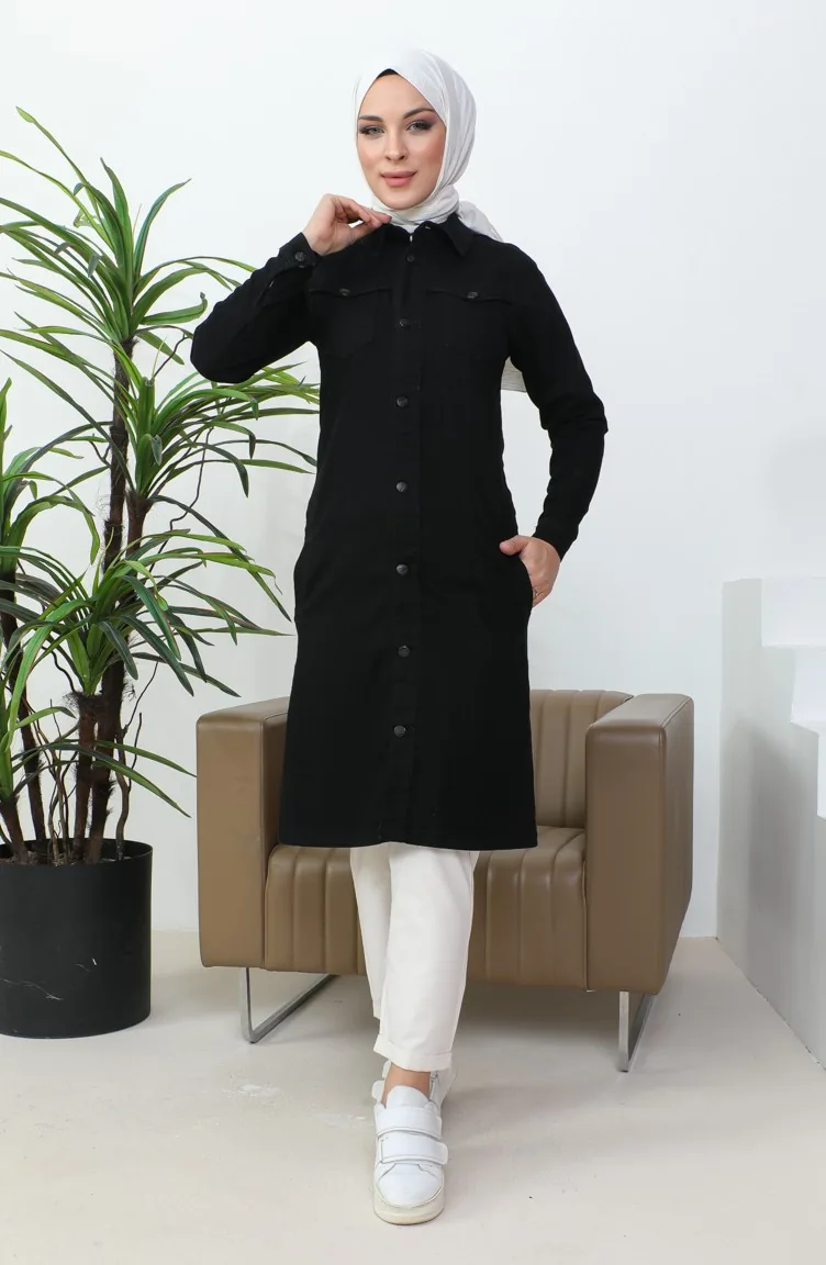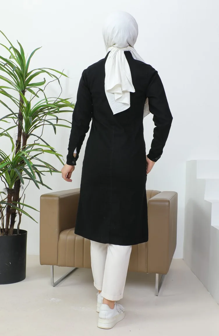 Black color is used. It has a plain appearance. The product is used unlined. Long sleeve product. Suitable for 4 seasons. Plus size option available.