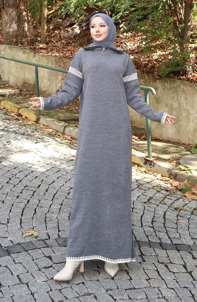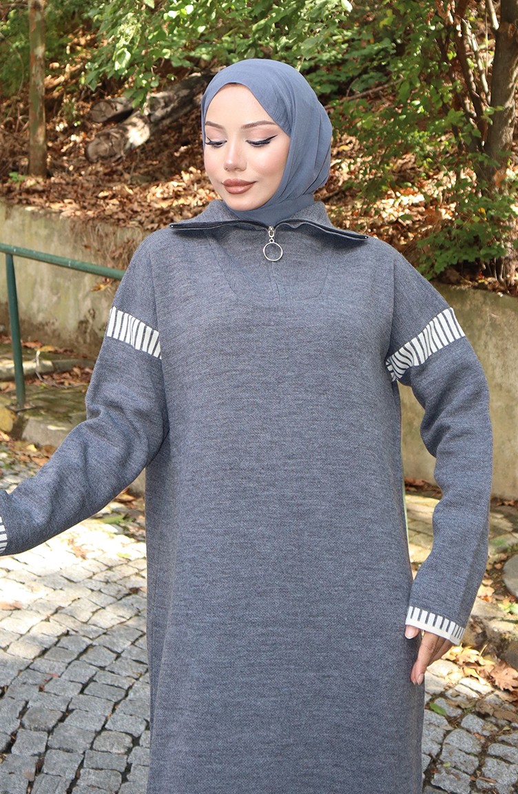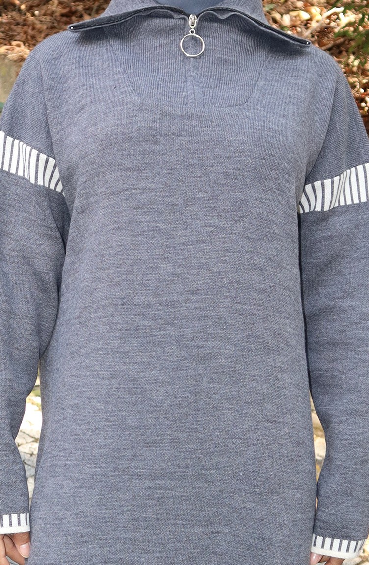 Gray color is used. Designed by Acrylic fabric. It has a plain appearance. Zipper is used for easy handling. Indispensable for the winter months is the turtleneck for those who seek elegance with a simple look. Designed from thick fabric. The size worn by the model, is the one on the image.