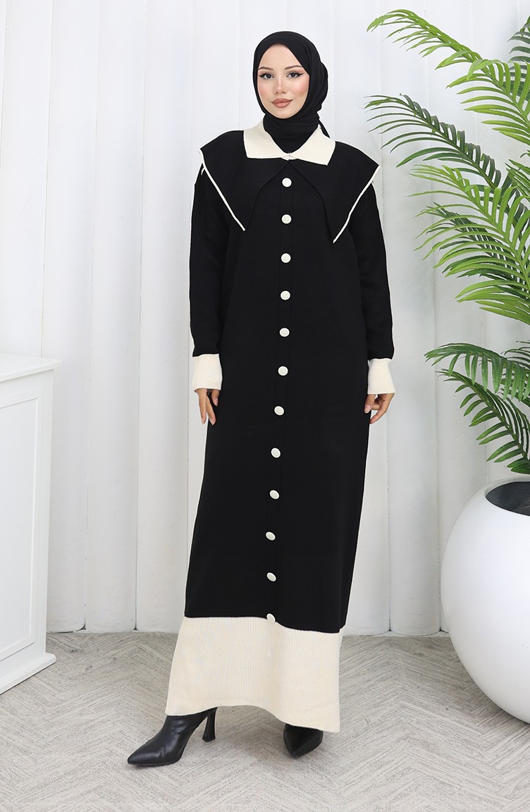 Gebreide Jurk Met Knoopjeskraag En Details 0513-02 Zwart 0513-02