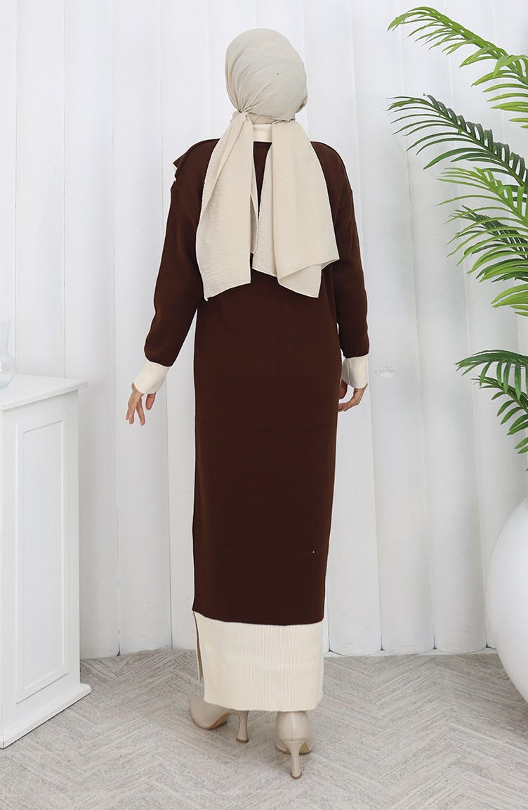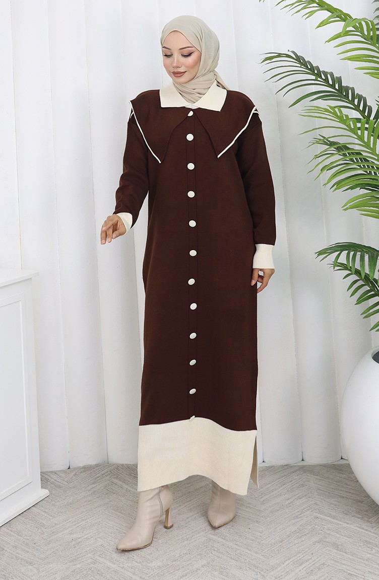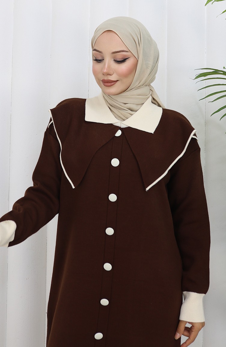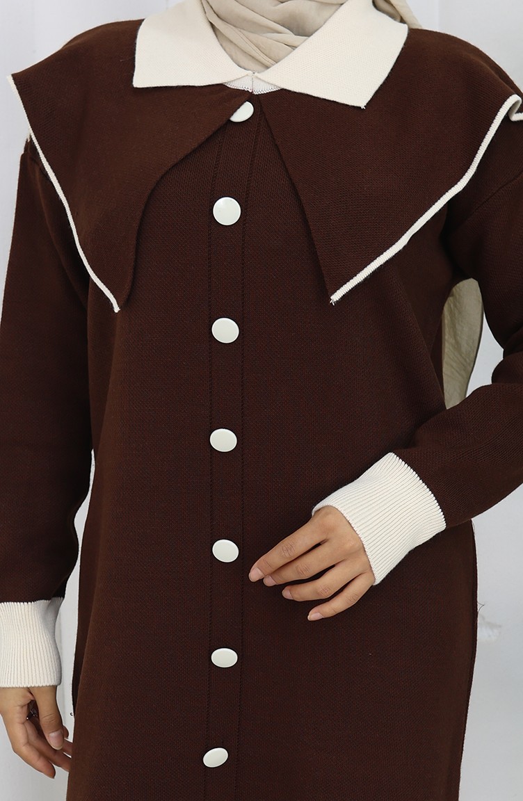 Gebreide Jurk Met Knoopjeskraag En Details 0513-05 Bruin 0513-05