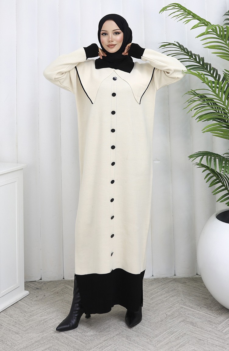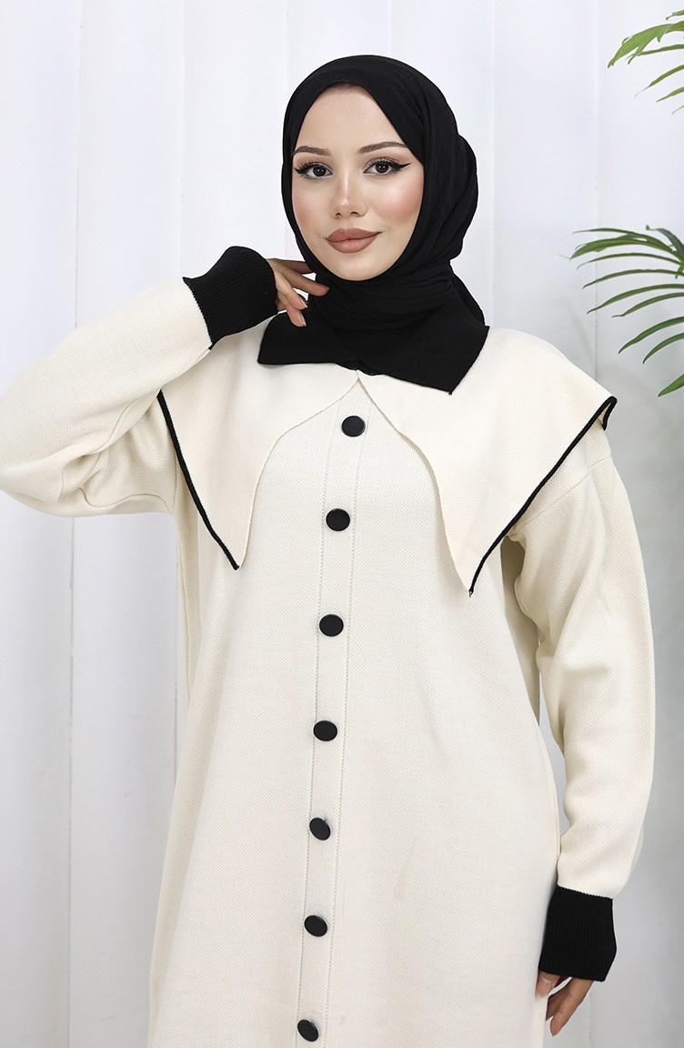 Gebreide Jurk Met Knoopjeskraag En Details 0513-06 Beige 0513-06