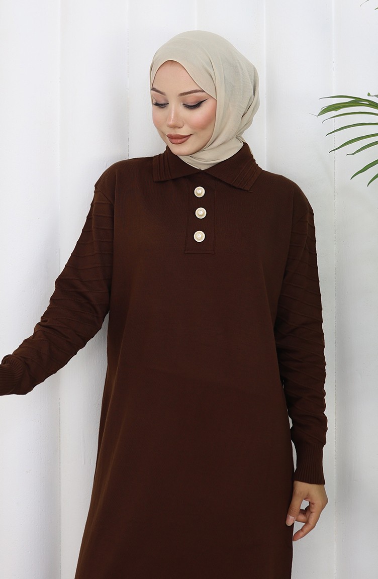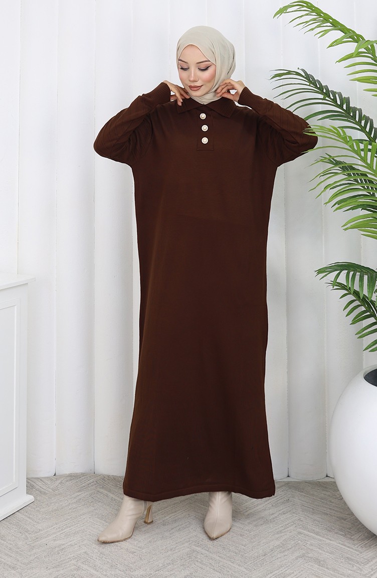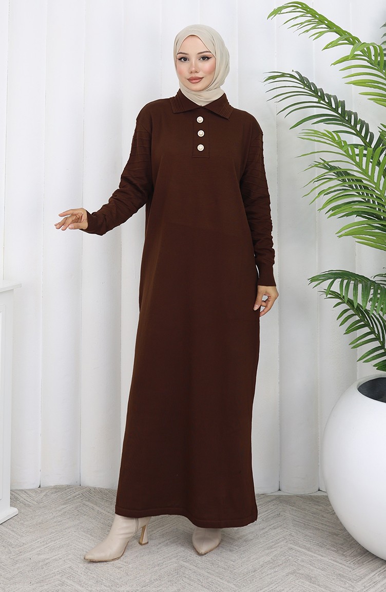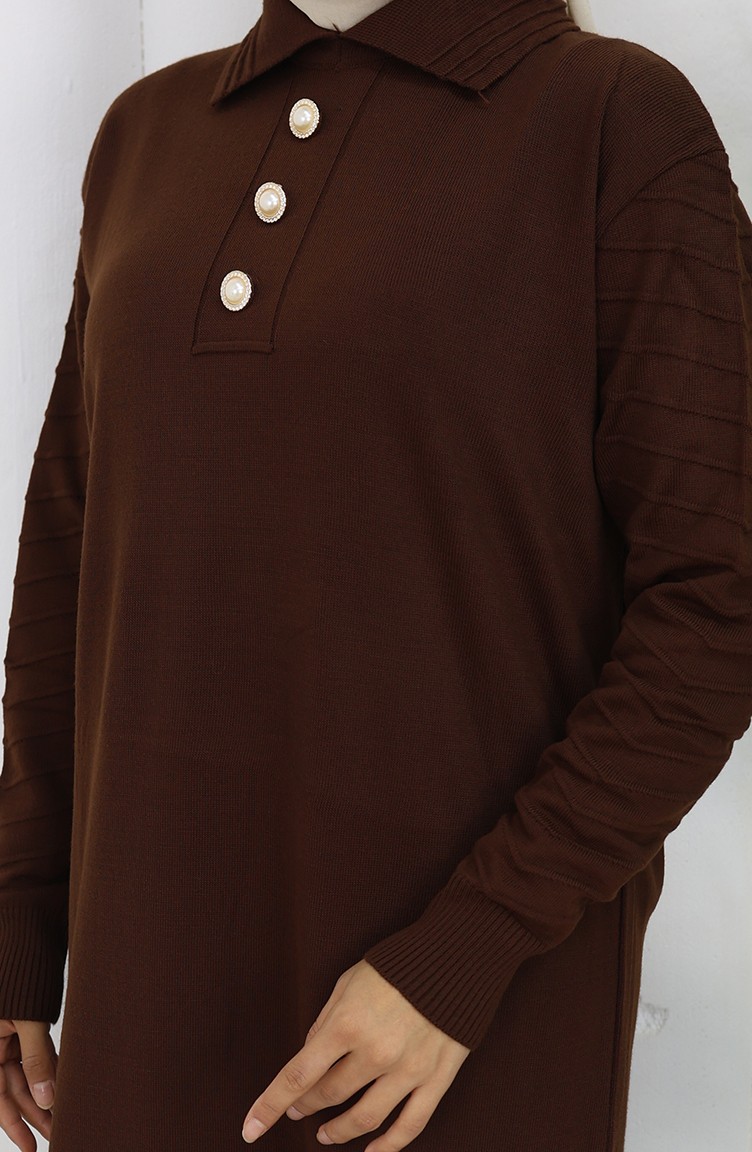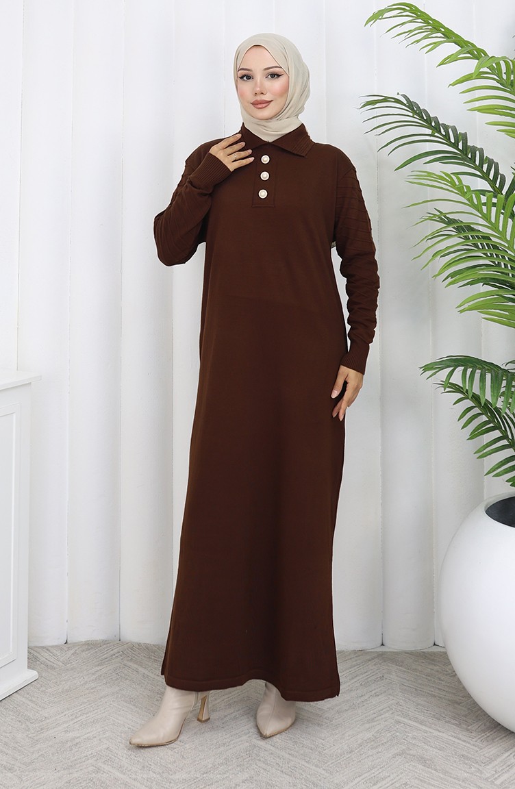 Gebreide Polokraagjurk Met Knopen 1141-04 Bruin 1141-04