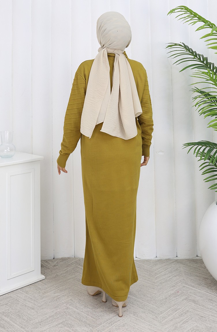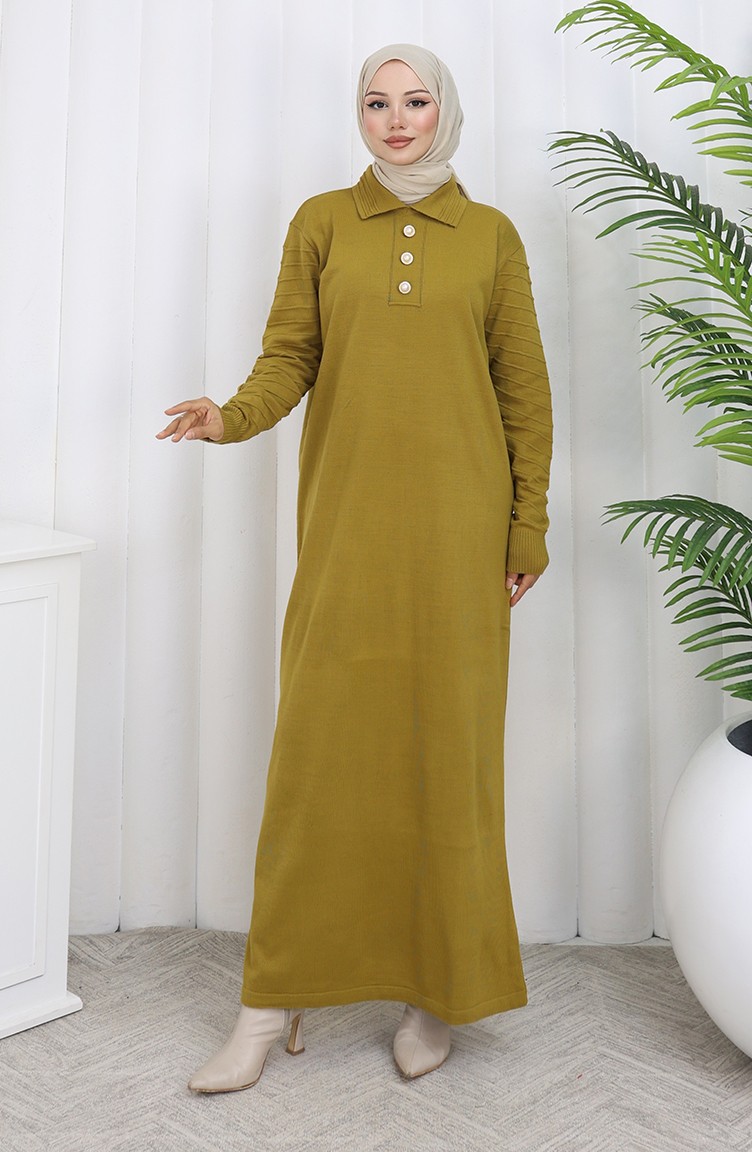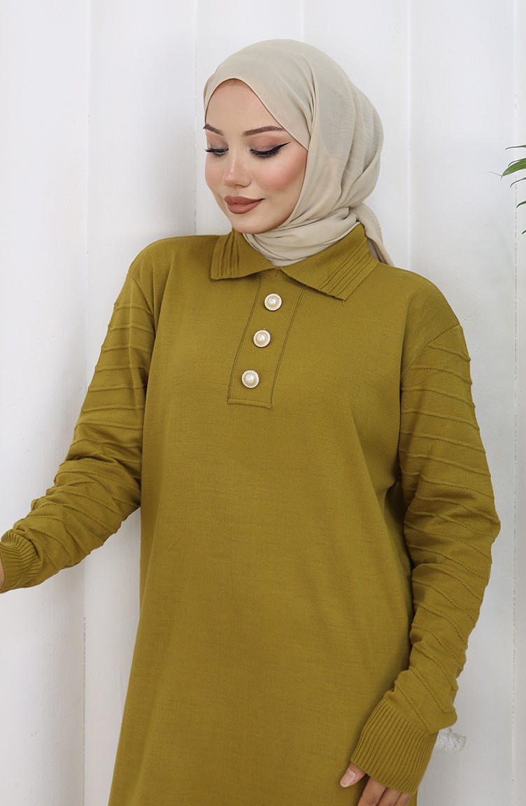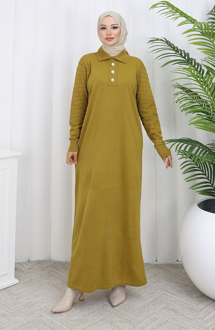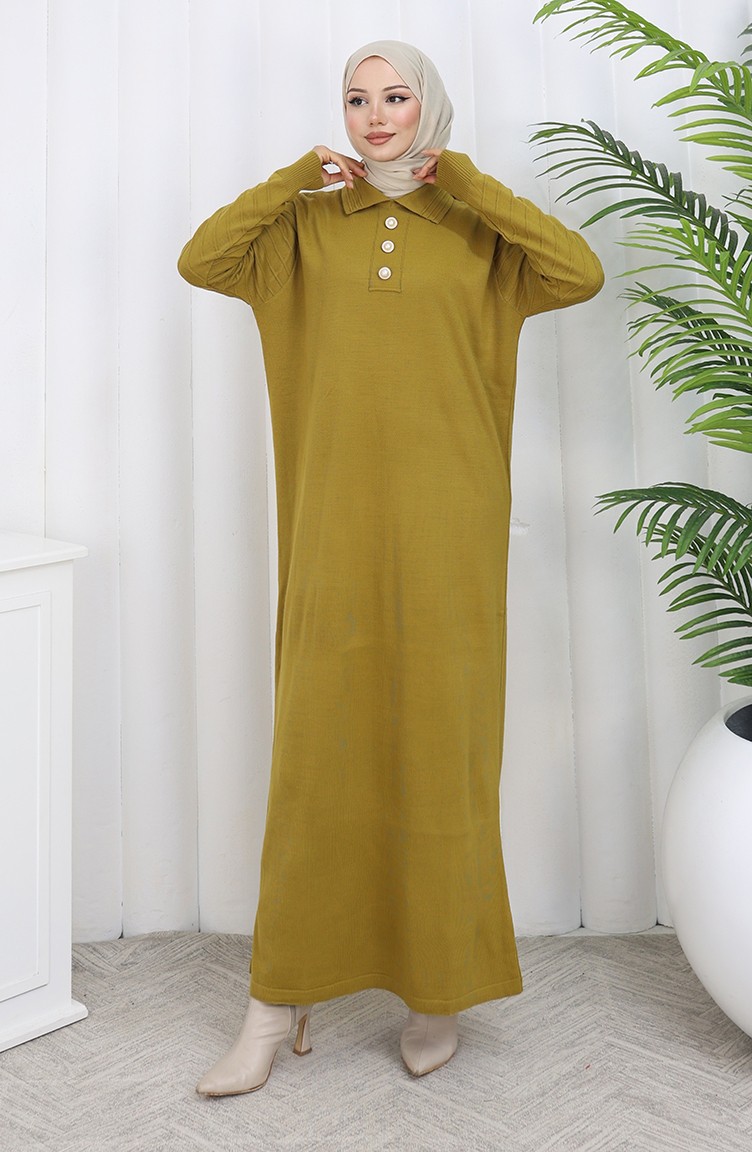 Gebreide Polokraagjurk Met Knopen 1141-08 Oliegroen 1141-08