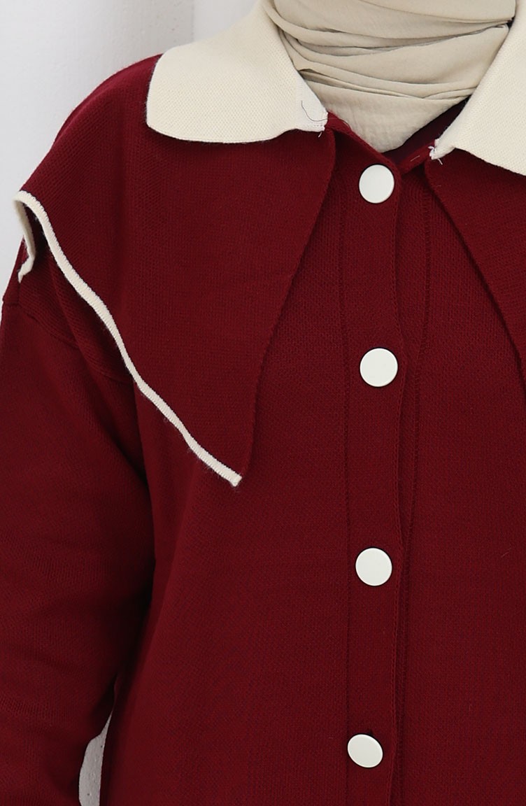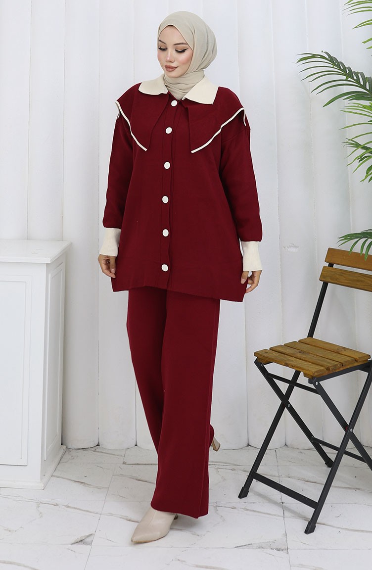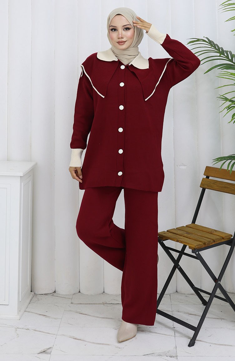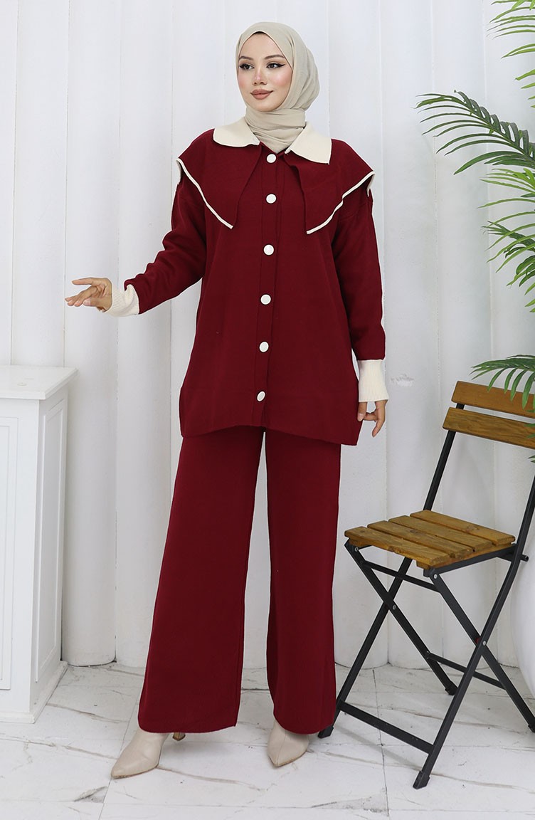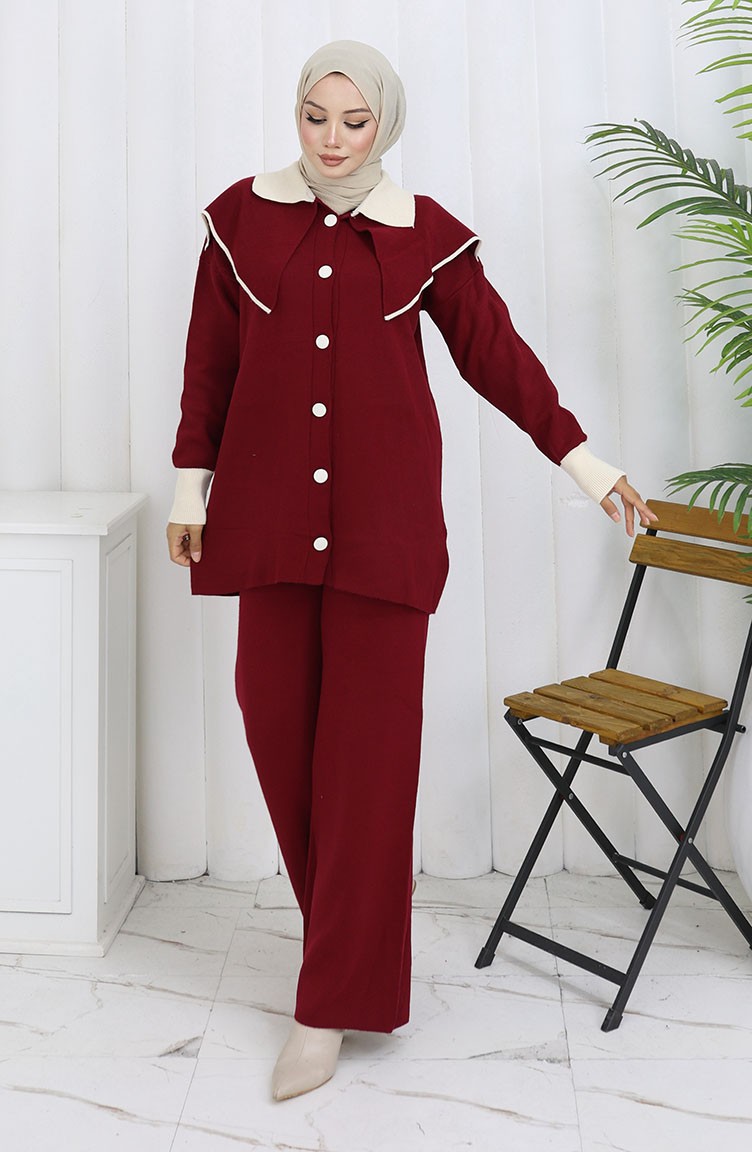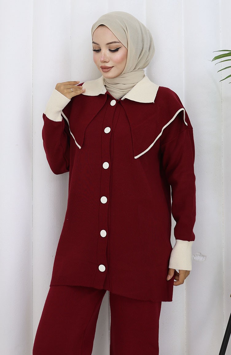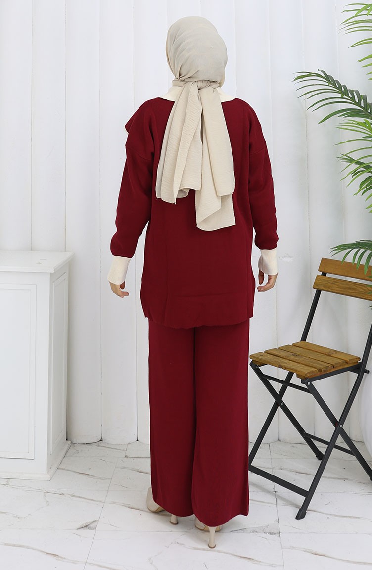 Gebreid Geknoopt Tuniek Met Garneringen Tweedelig Pak 1122-08 Bordeauxrood 1122-08