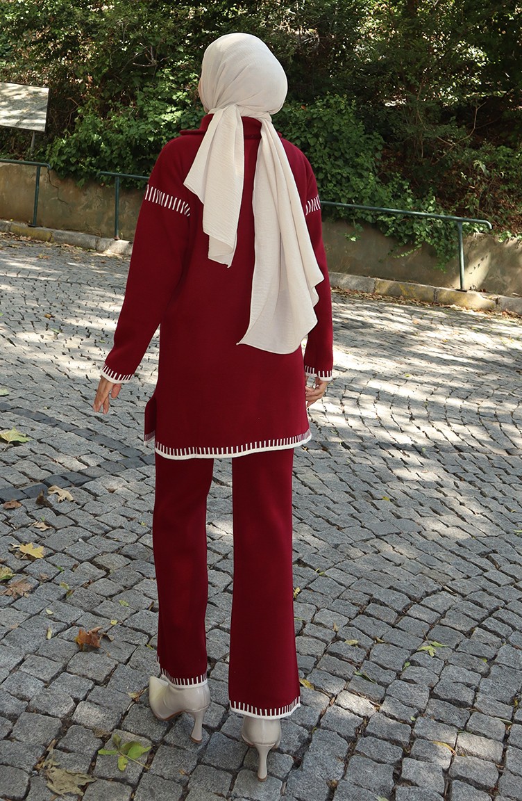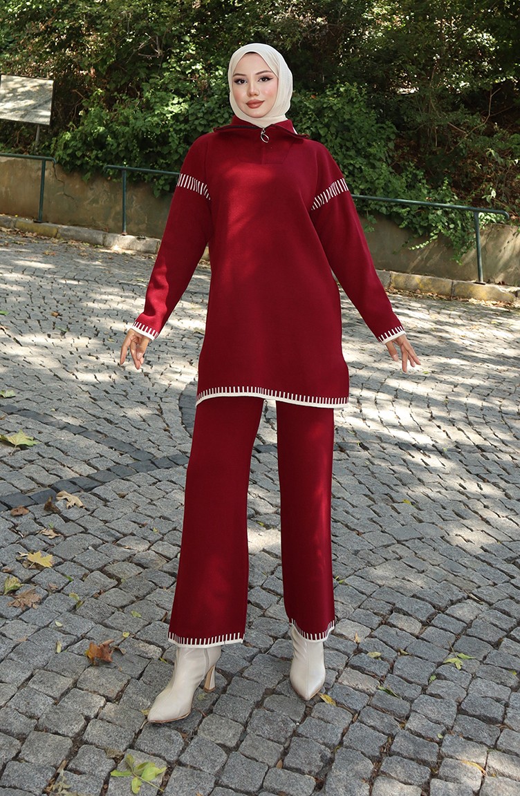 Gebreid Tuniek Met Ritskraag Broek Tweedelig Pak 1061-01 Bordeauxrood 1061-01