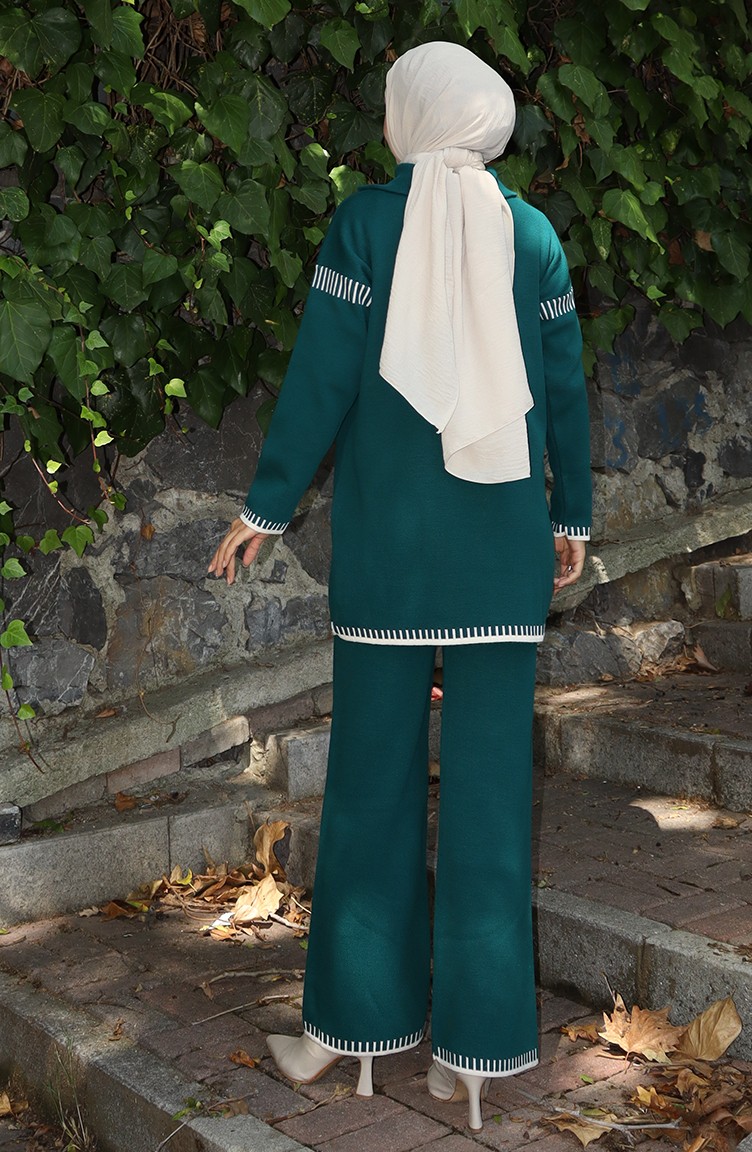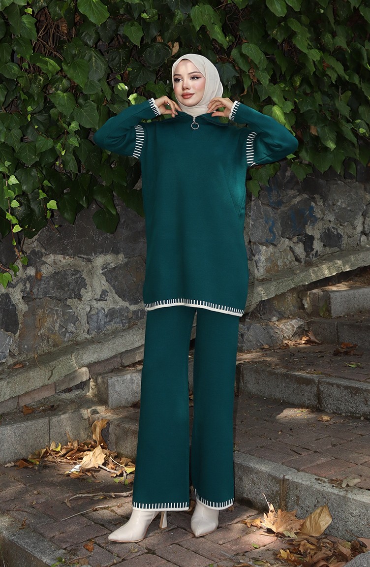 Gebreid Tuniek Met Ritskraag Broek Tweedelig Pak 1061-02 Petrol 1061-02