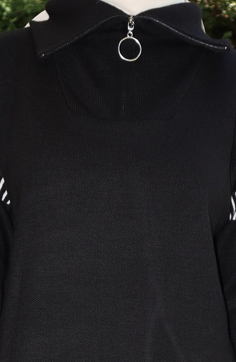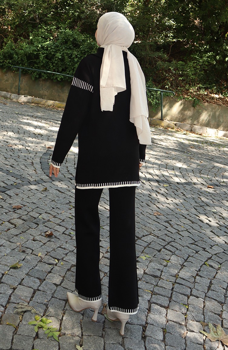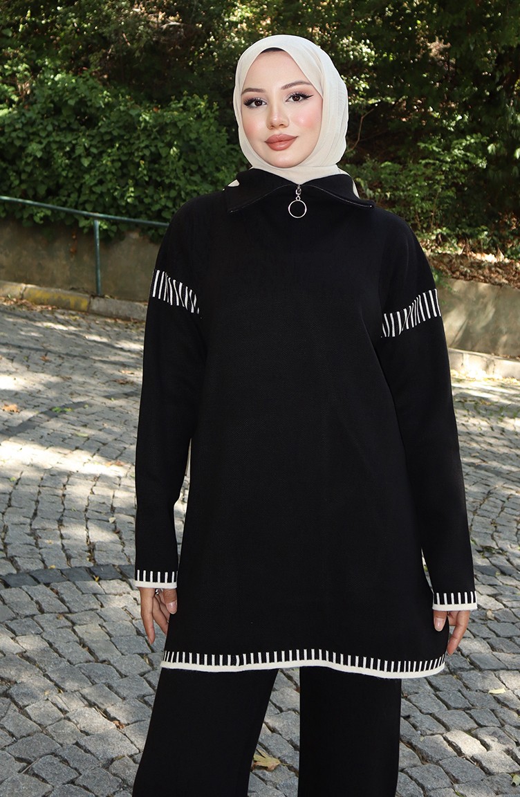 Gebreid Tuniek Met Ritskraag Broek Tweedelig Pak 1061-04 Zwart 1061-04