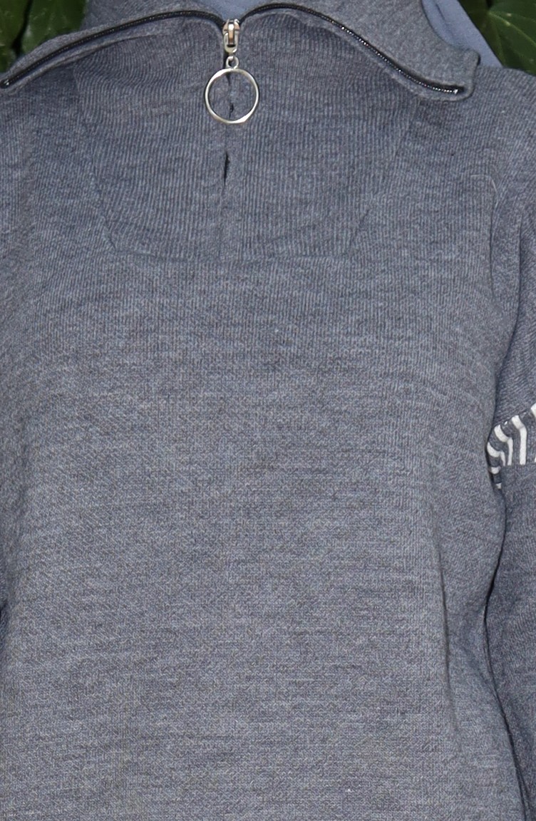 Gebreid Tuniek Met Ritskraag Broek Tweedelig Pak 1061-07 Grijs 1061-07