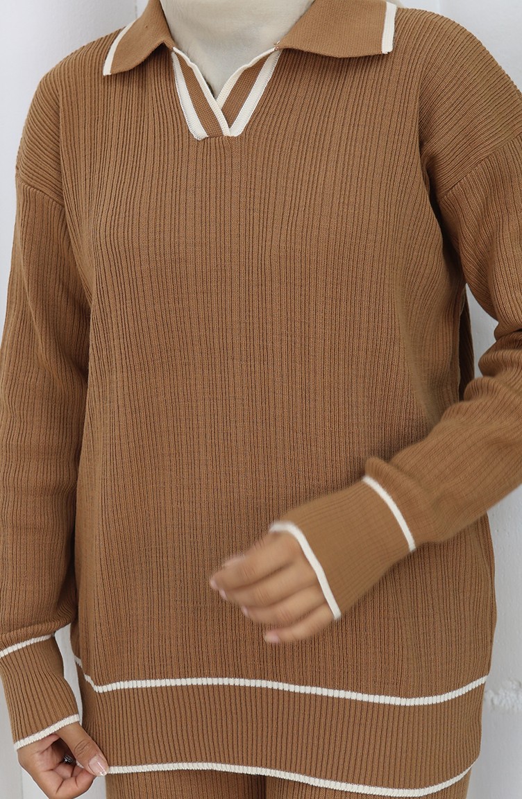 Gebreide Geribbelde Trui Broek Dubbelpak 0010-03 Melkkoffie 0010-03