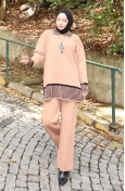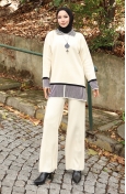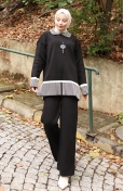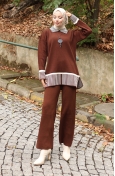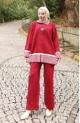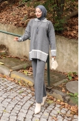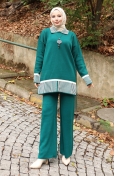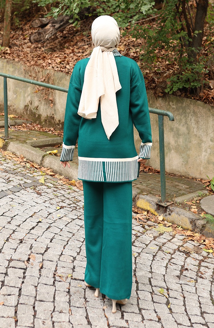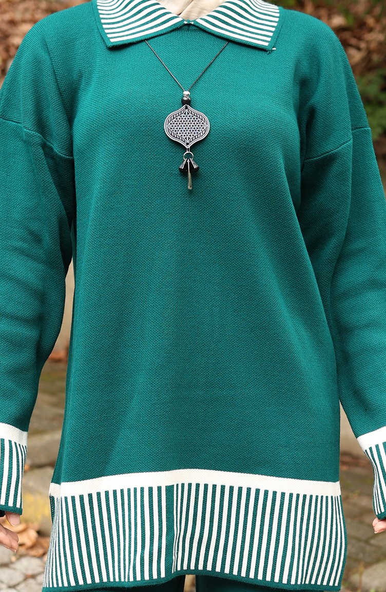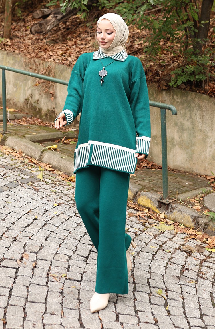 Gebreide Streep Gedetailleerde Tuniek Broek Tweedelig Set 1066-08 Petrol 1066-08