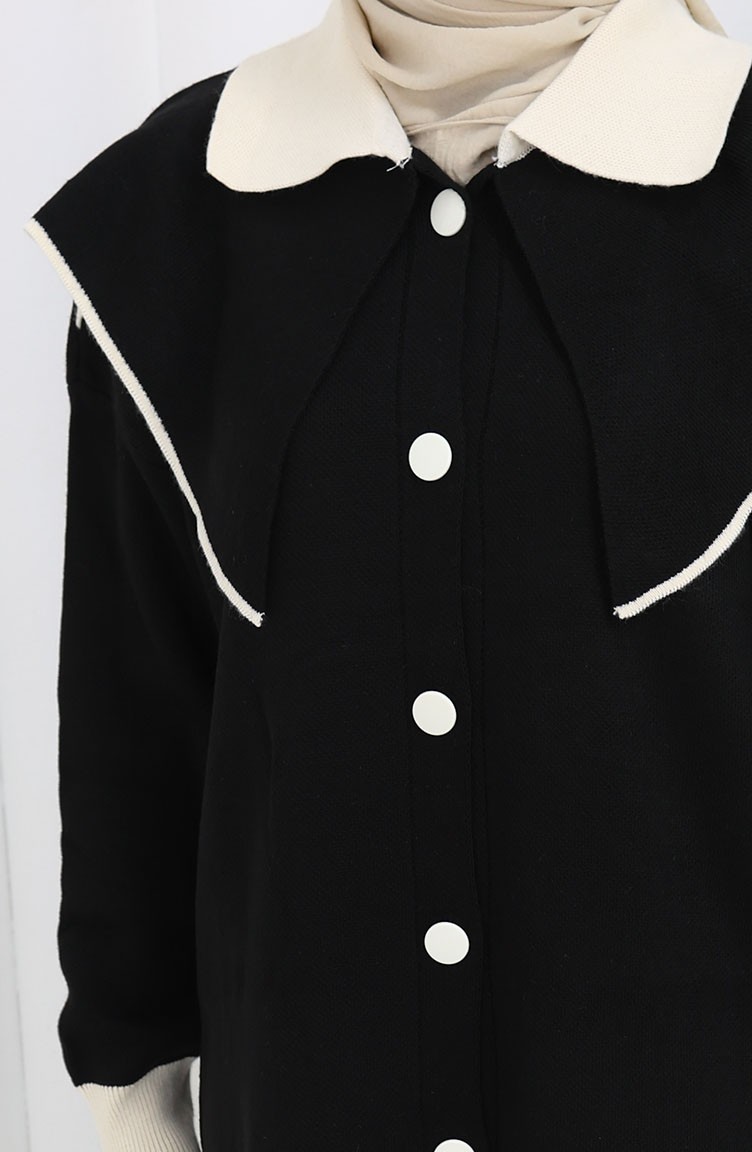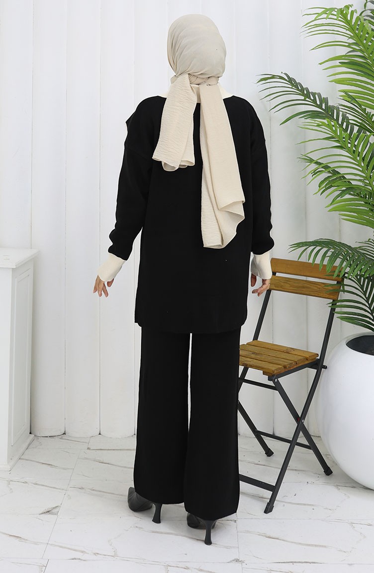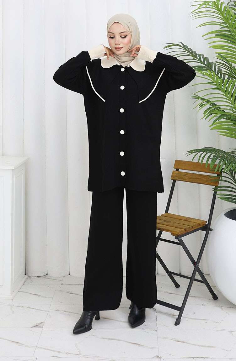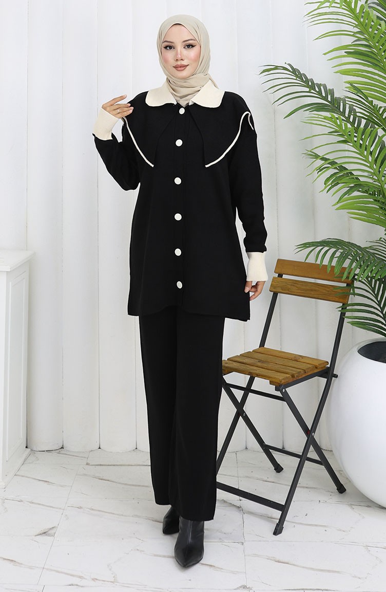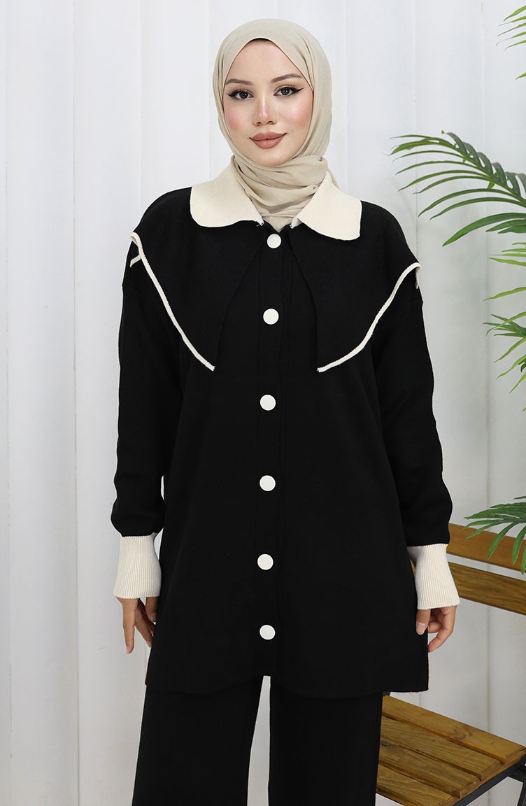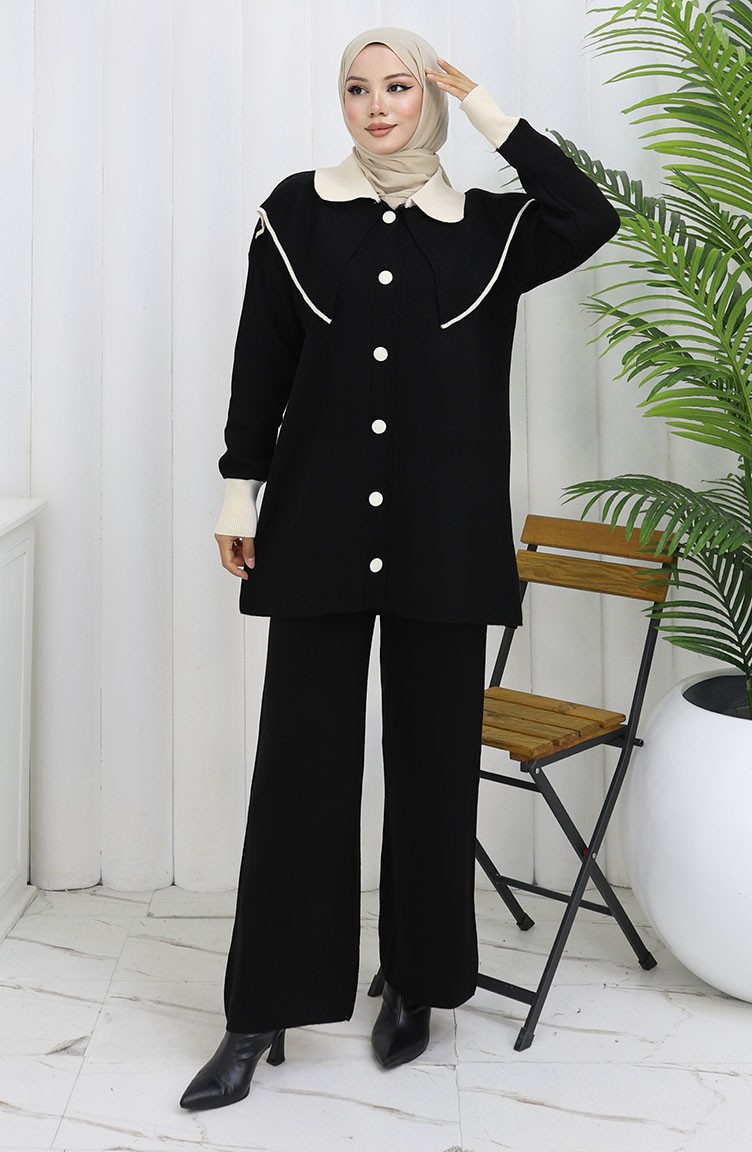 Gebreide Tuniek Met Knopen En Garneringen Tweedelig Pak 1122-03 Zwart 1122-03