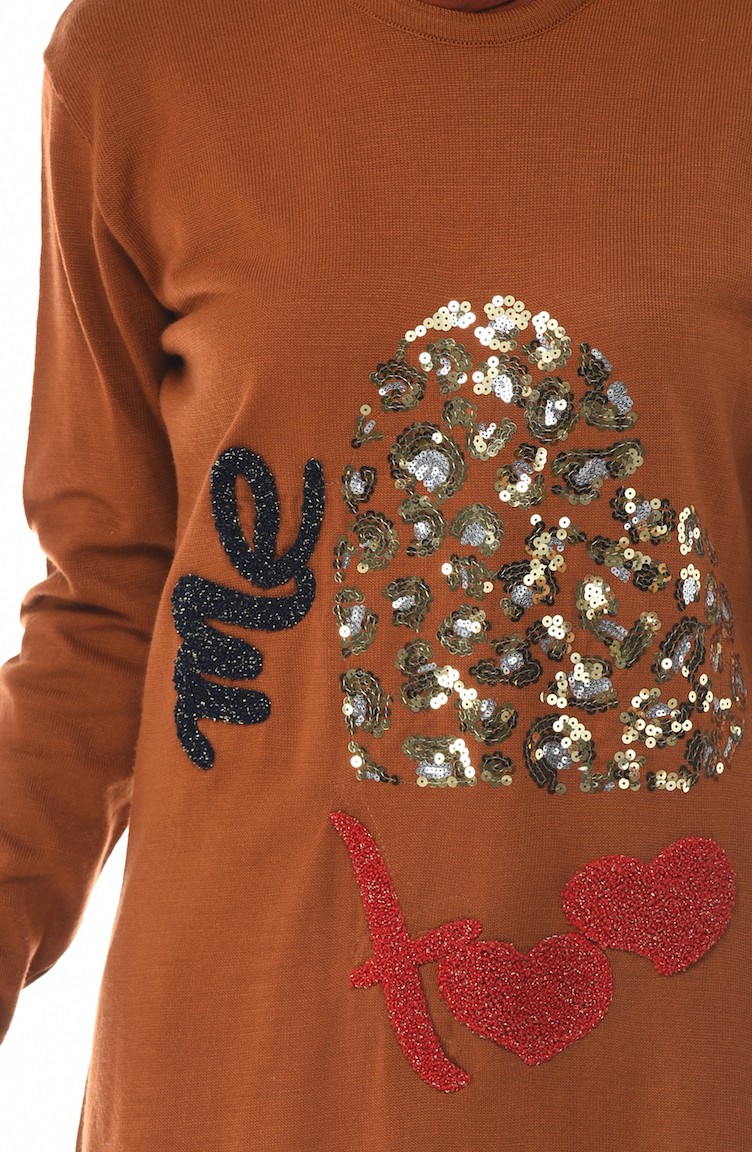 Payetli Triko Kazak 1114-01 Kahverengi 1114-01
