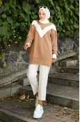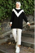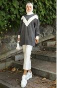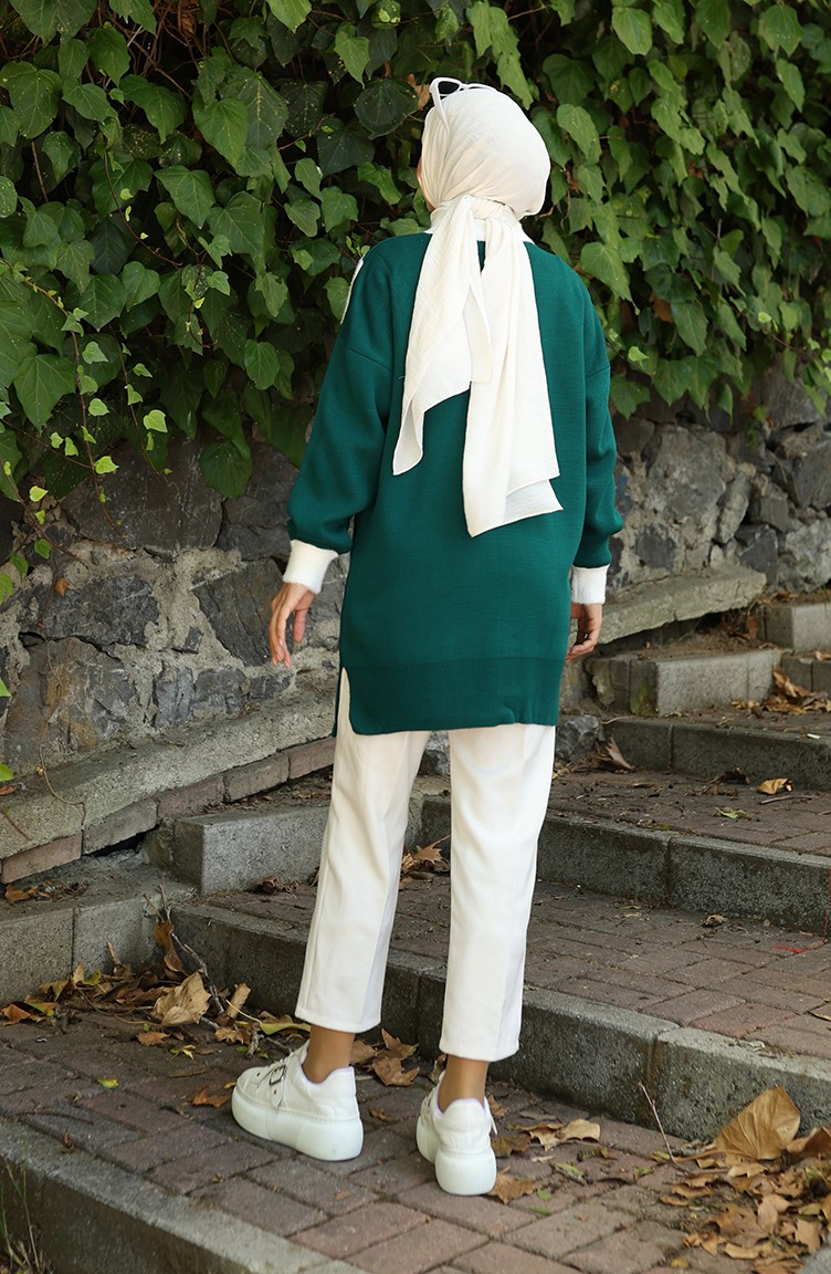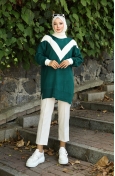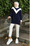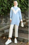 Oil Blue color is used. Designed by Acrylic fabric. Designed with patterned fabric. When the tunic combined with another product, you will get a nice suit. Designed from thick fabric. The size worn by the model, is the one on the image.