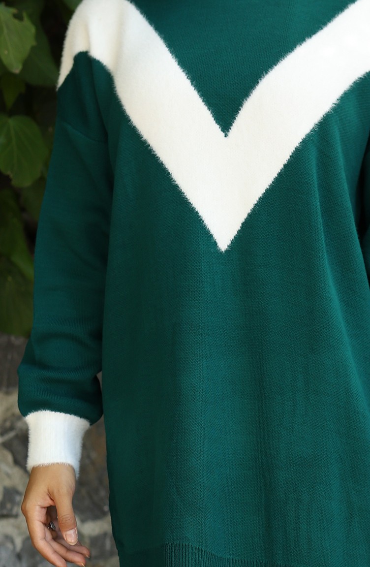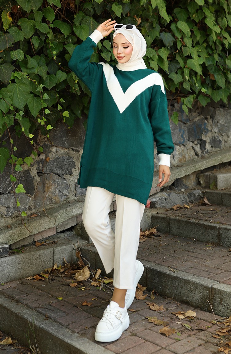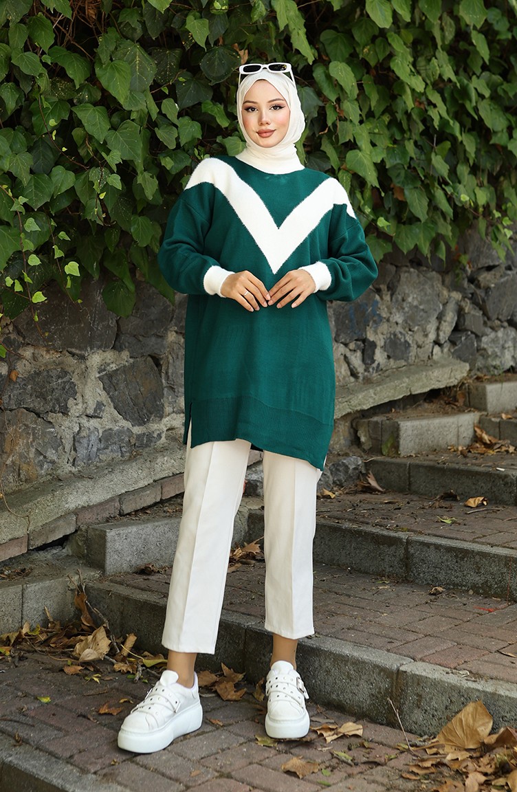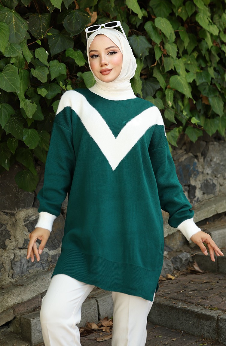 Breiwerk V-patroon Met Garnering Tuniek 3017-08 Petrol 3017-08