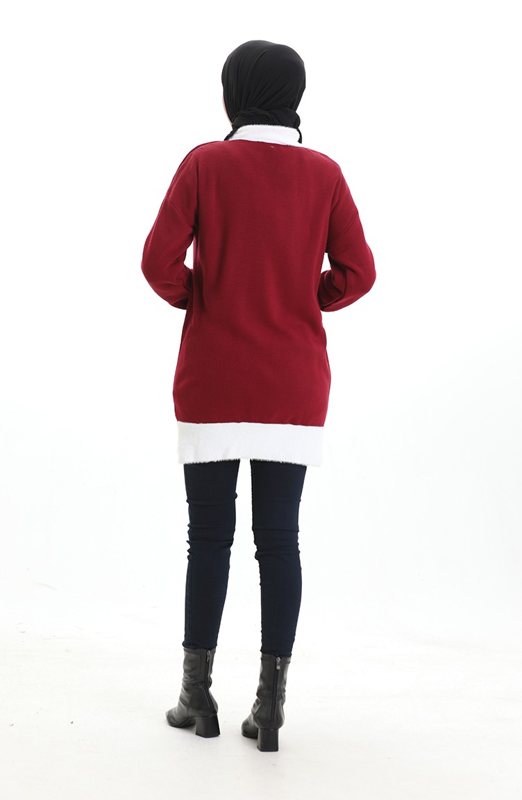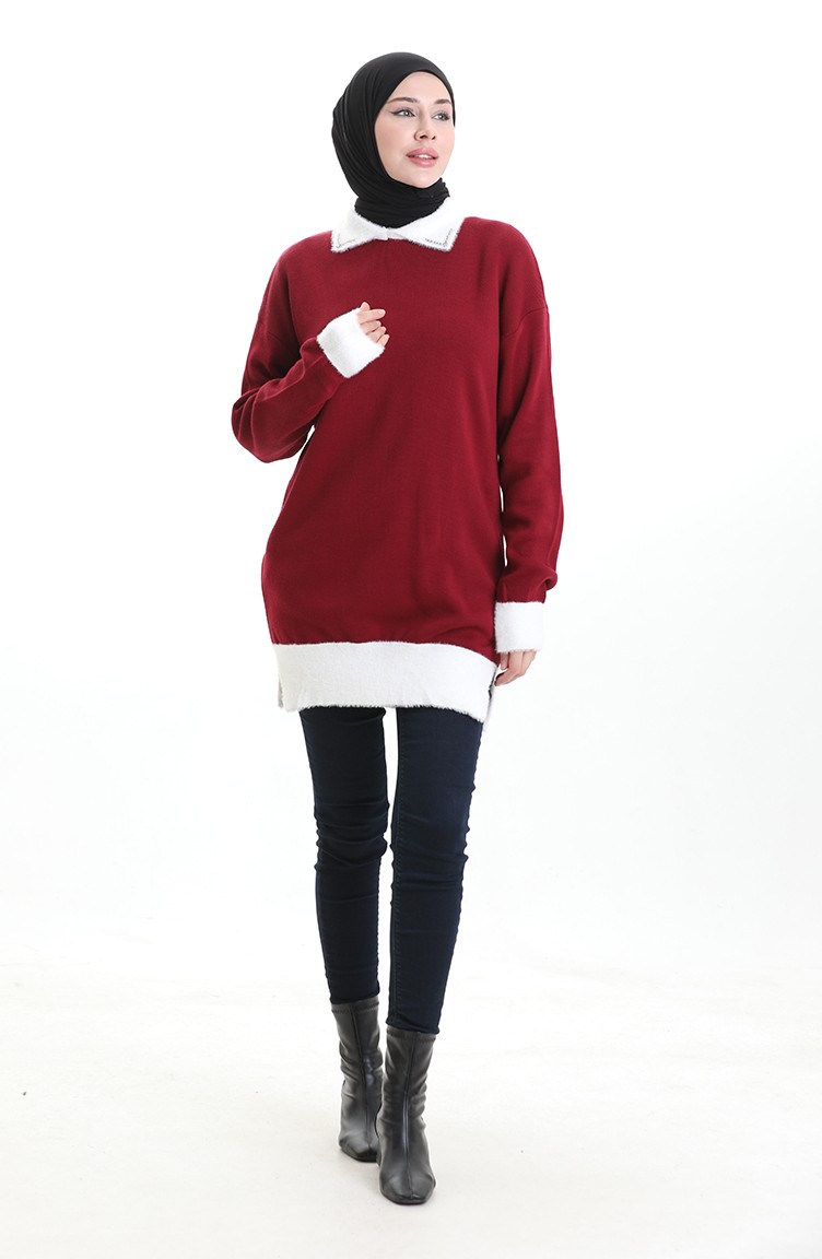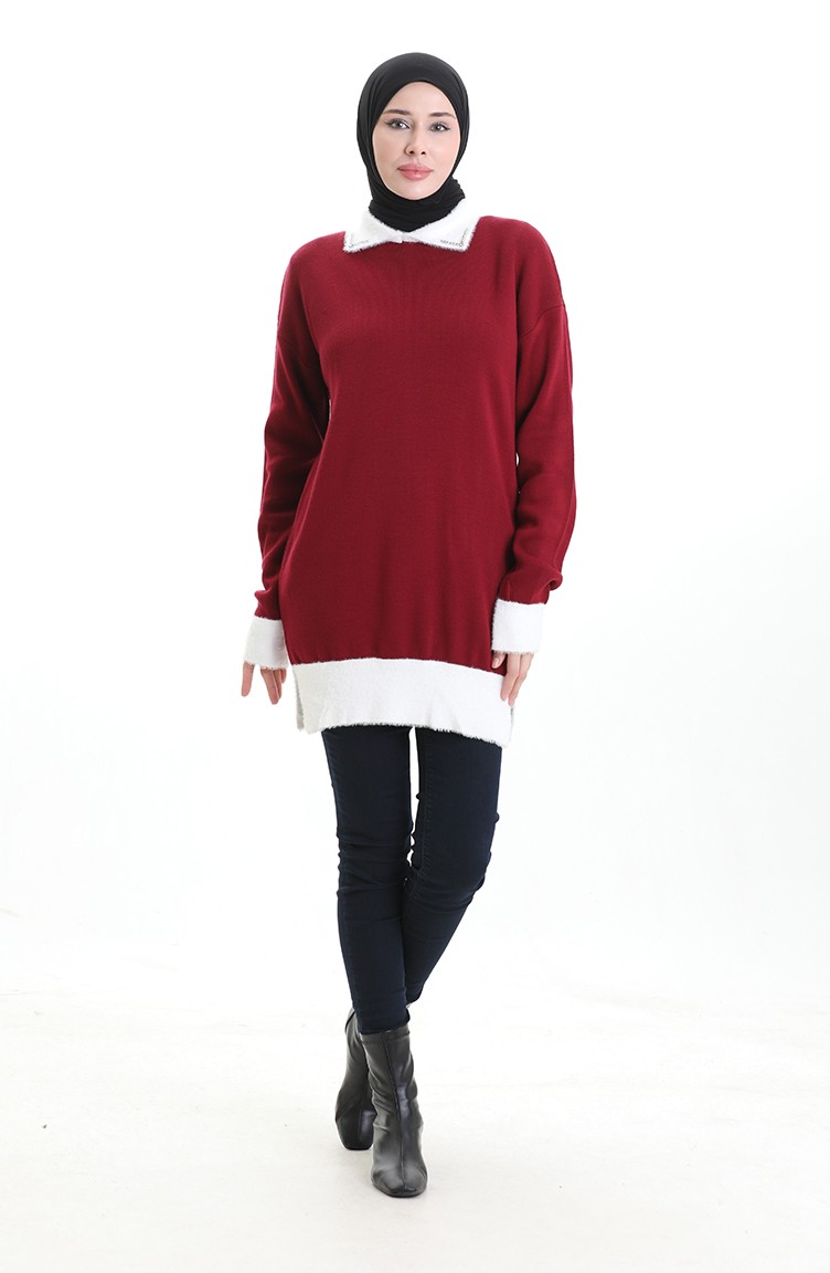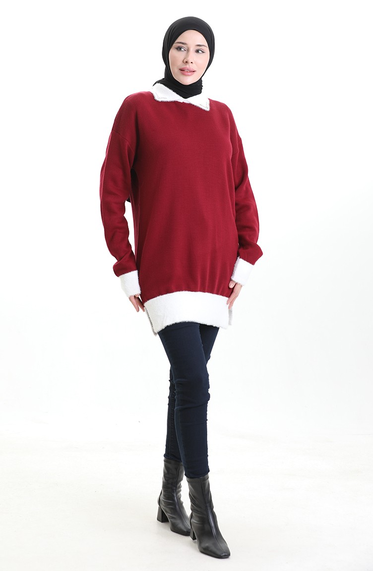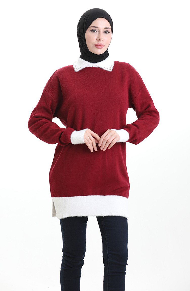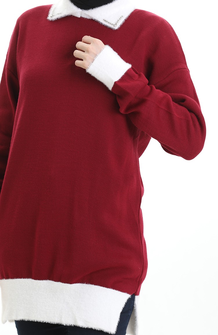 Gebreide Gedetailleerde Tuniek Met Kralen 3002-14 Bordeauxrood 3002-14
