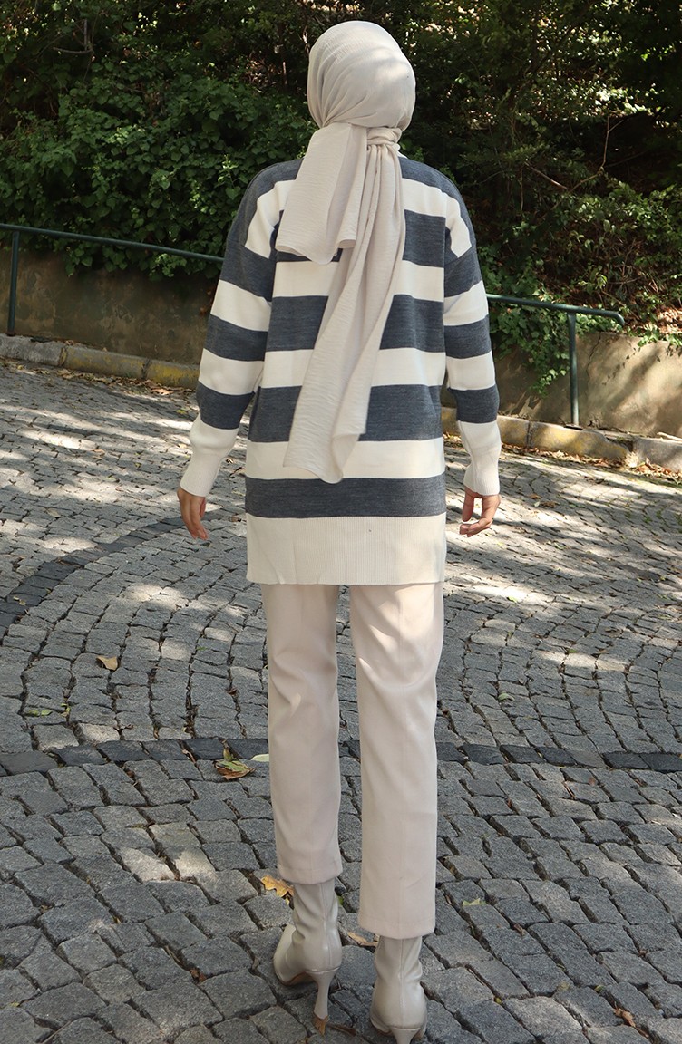 Gebreide Kleurblok Tuniek Met Rits 3003-07 Grijs 3003-07