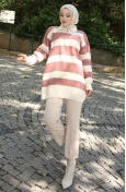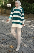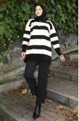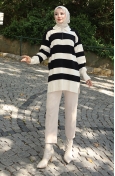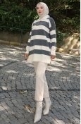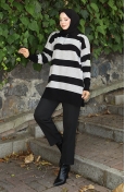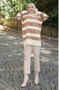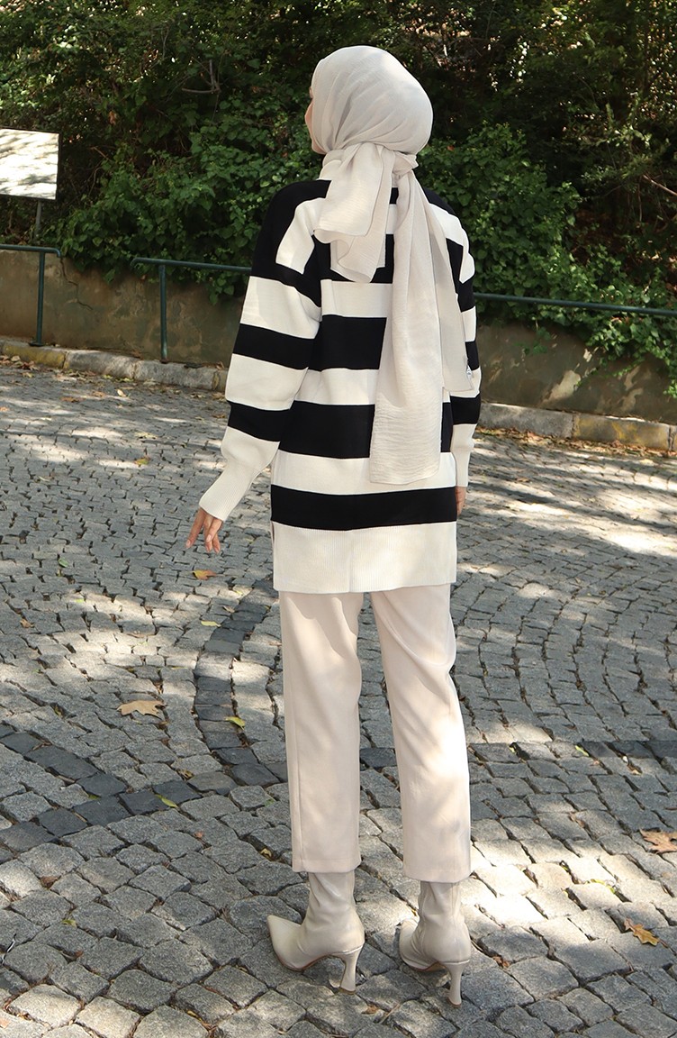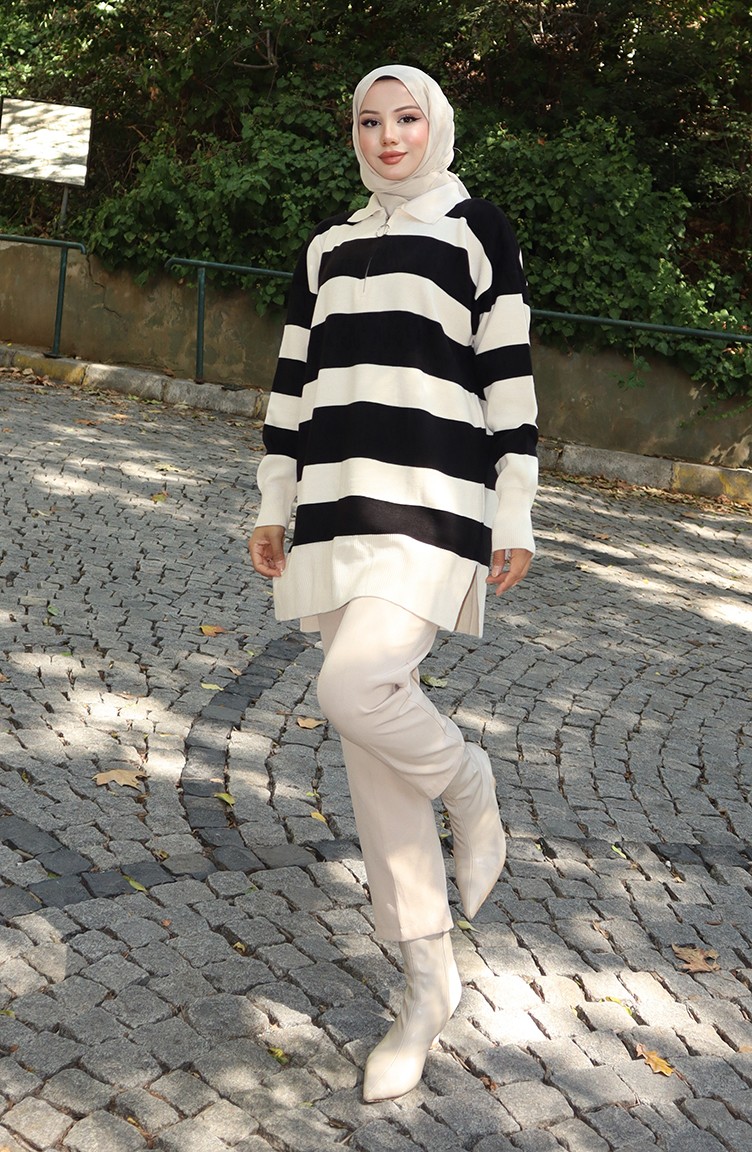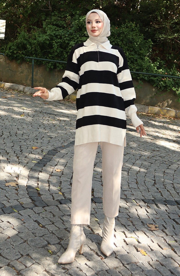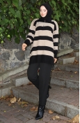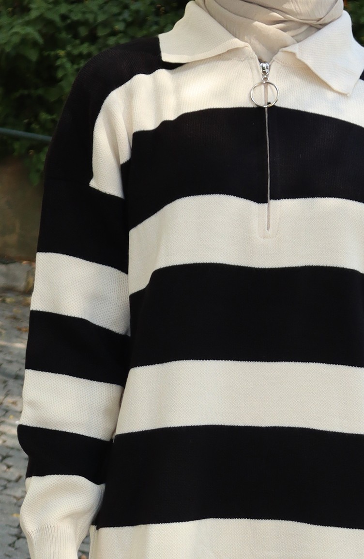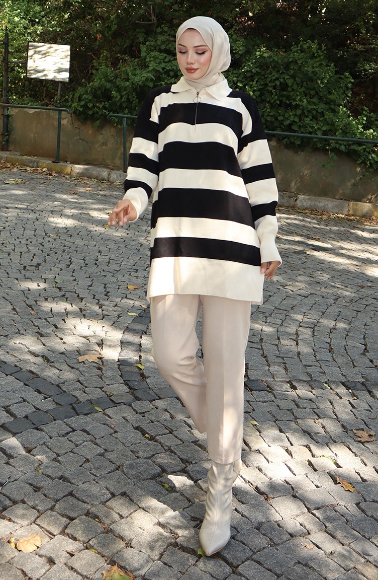 Gebreide Kleurblok Tuniek Met Rits 3003-10 Beige Zwart 3003-10