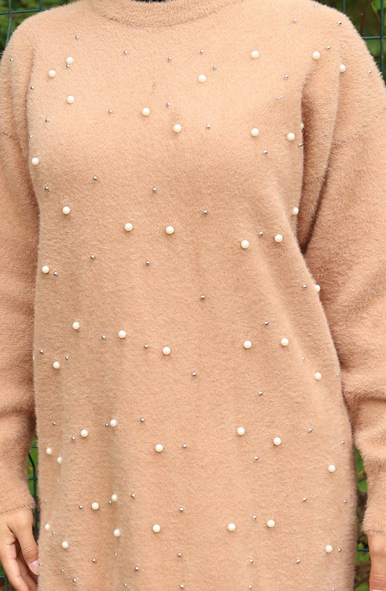 Gebreide Parel Gedetailleerde Tuniek 3009-04 Melkkoffie 3009-04