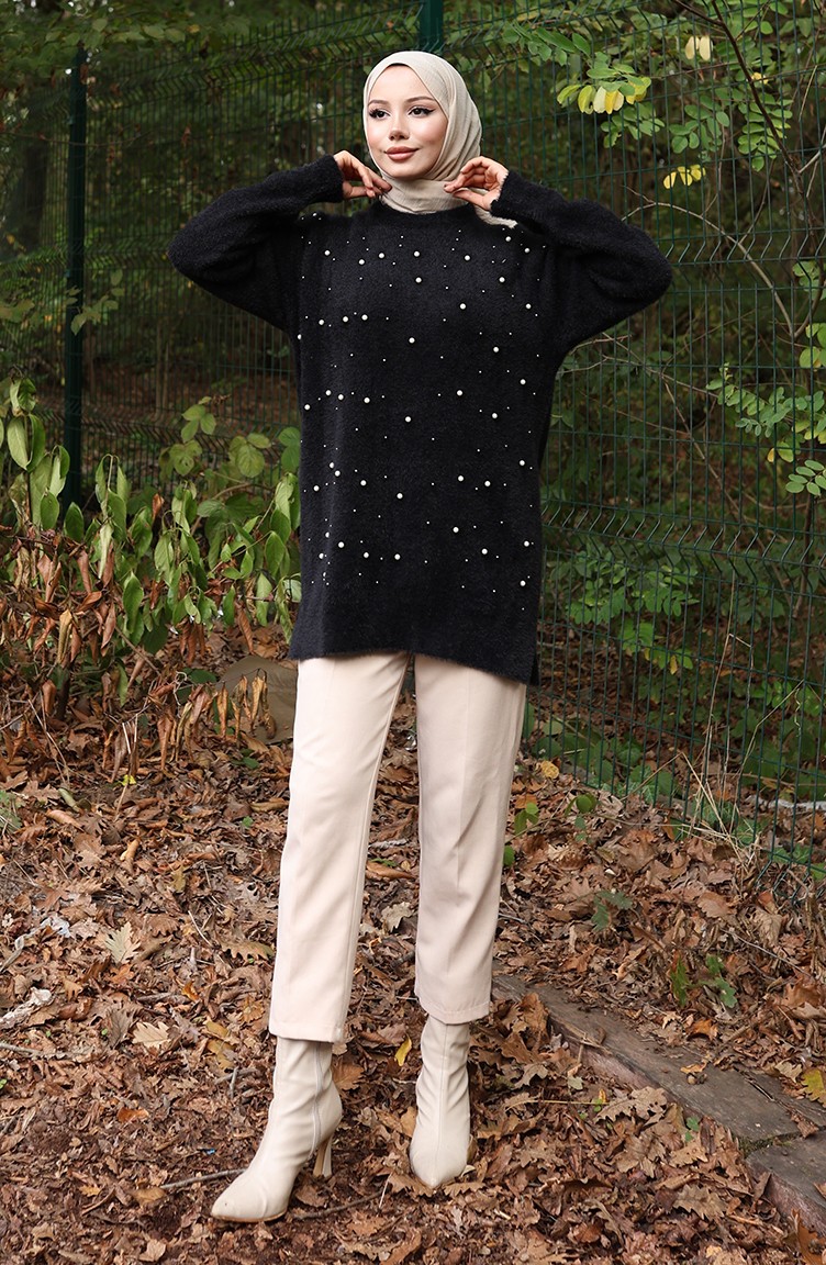 Gebreide Parelmoeren Tuniek 3009-02 Zwart 3009-02
