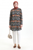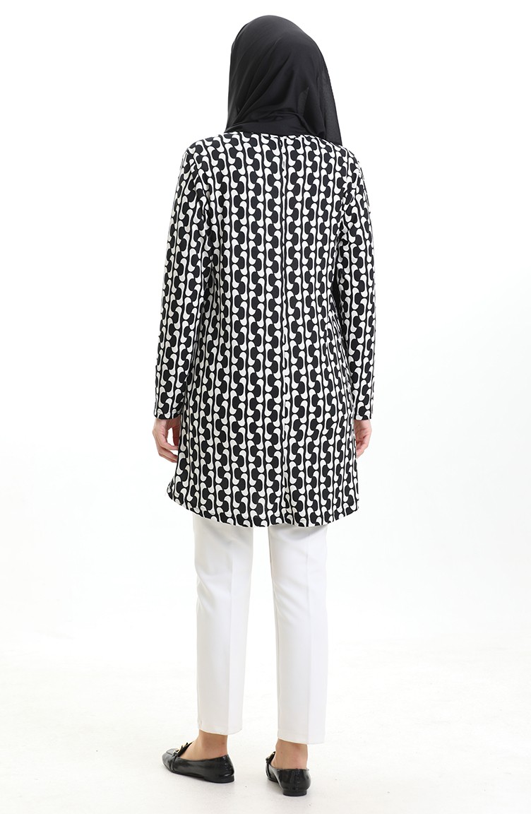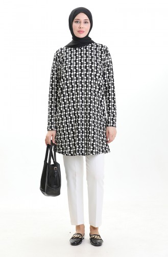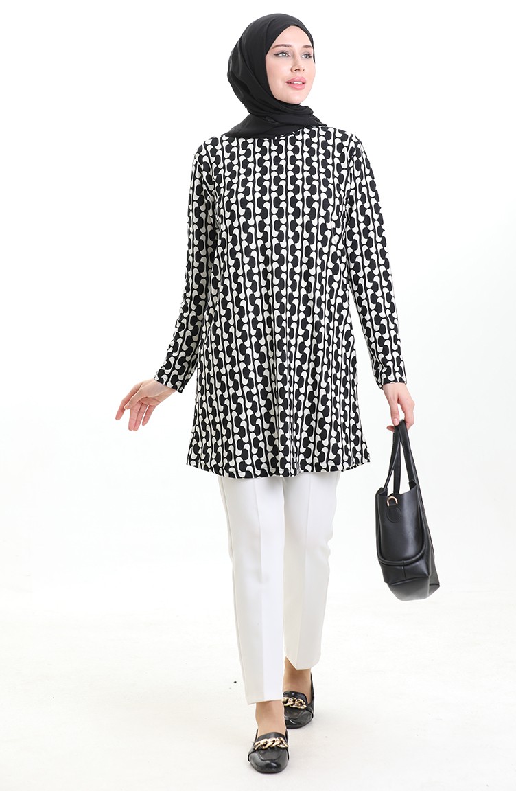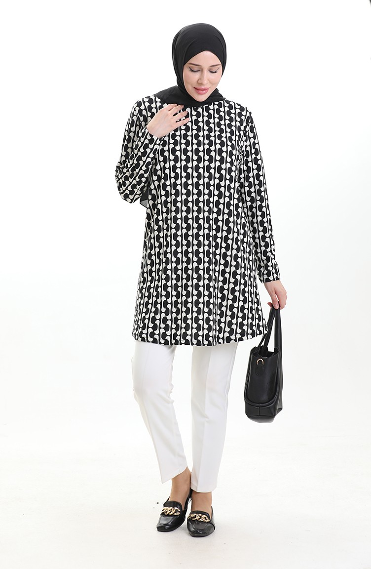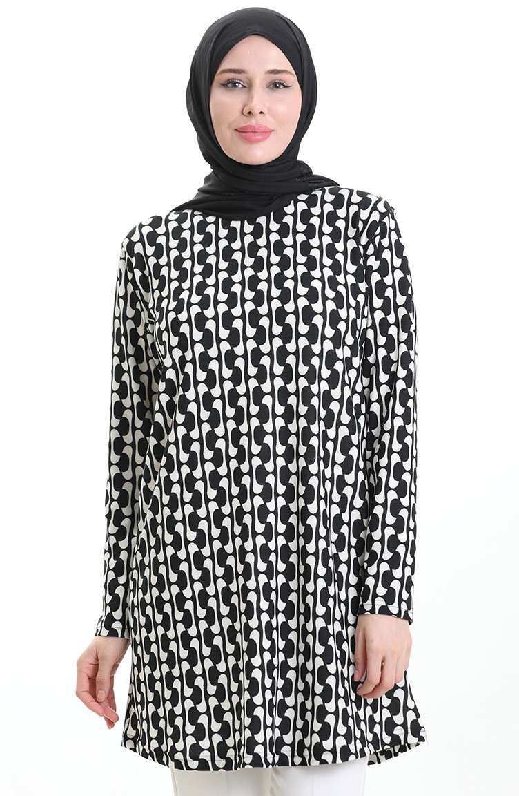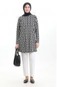 Digitaal Bedrukte Crêpe Tuniek 1004A-01 Zwart-wit 1004A-01