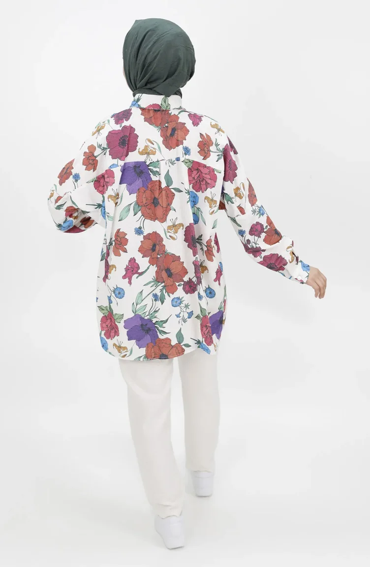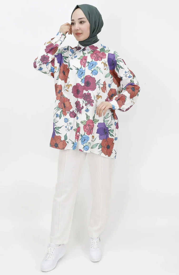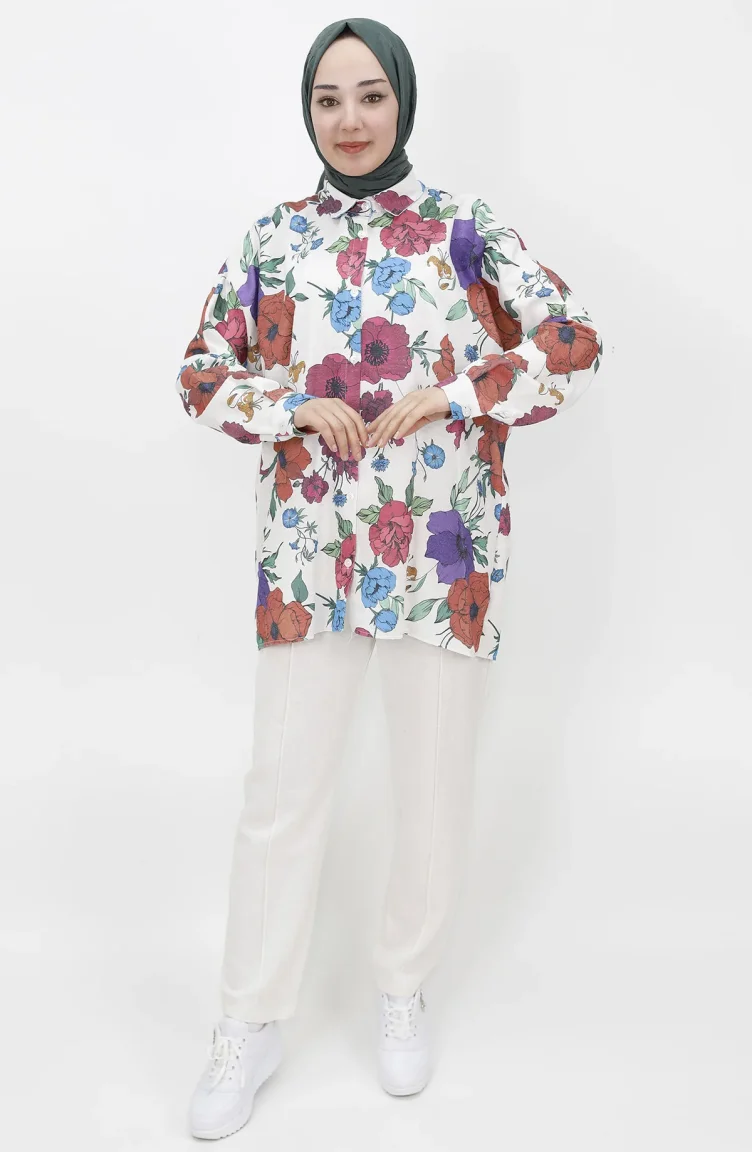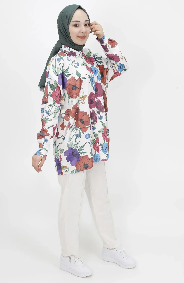 The linen fabric is resistant to heat and available in all seasons. Designed with patterned fabric. Buttons have been used to make it easy to use. Long sleeve product. Designed for summer use. Woman. The size worn by the model, is the one on the image.