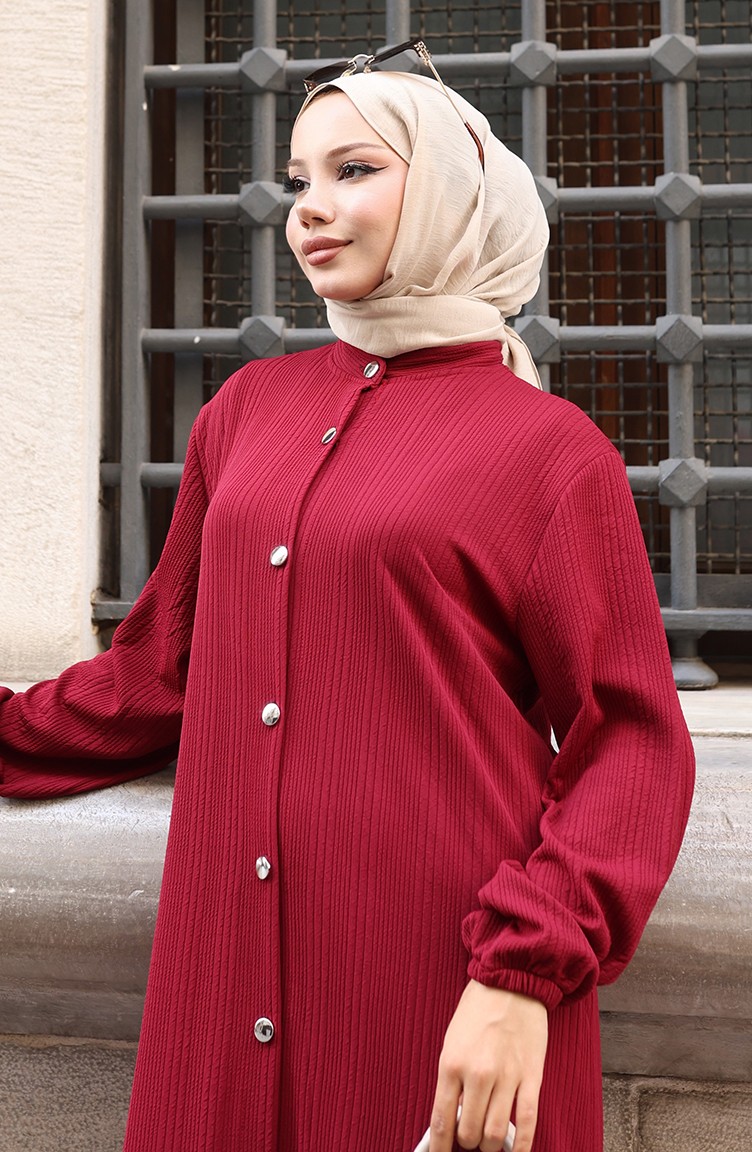 Geknoopt Geribbeld Hijab Broekpak 2177-02 Claret Red 2177-02