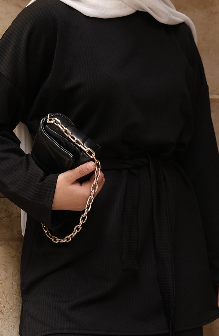 Geribbelde Geknoopte Hijab-broekset 2172-05 Zwart 2172-05