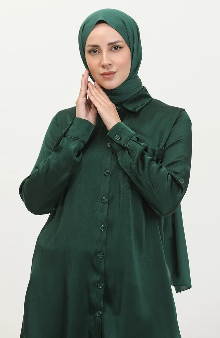 Emerald green color used. Elastane Fabric. It has a plain appearance. The product is used unlined. Suitable for 4 seasons. Plus size option available.