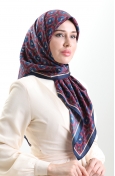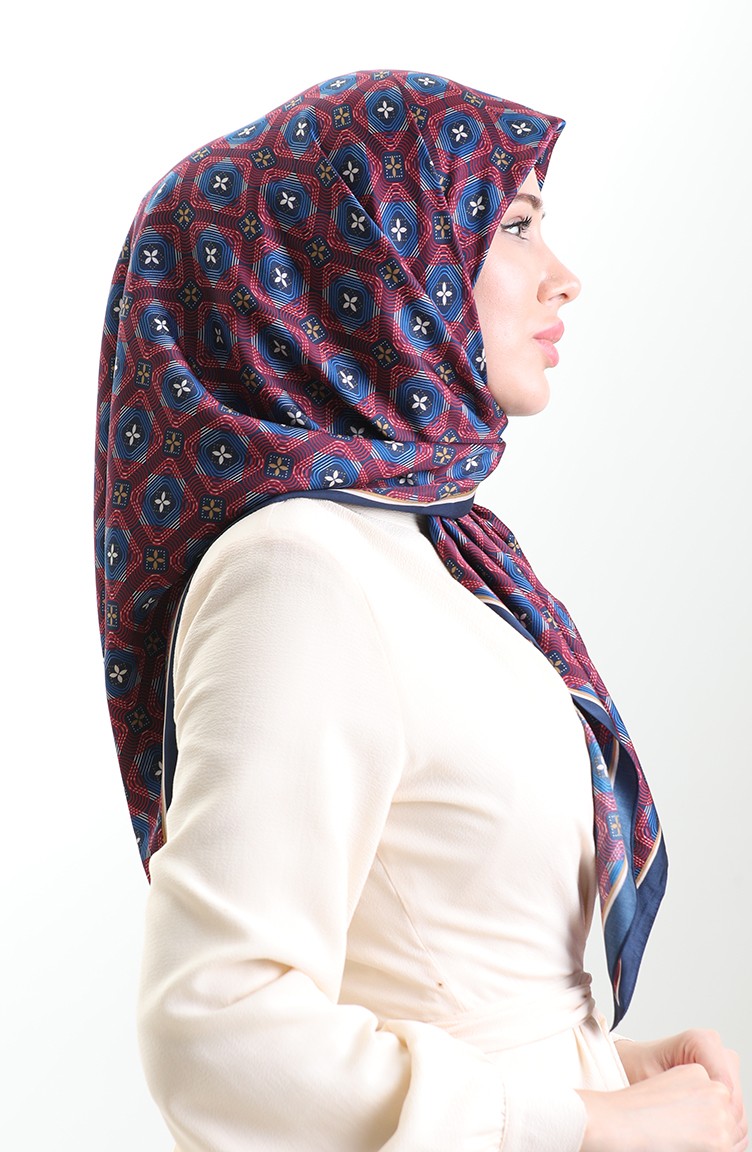 Karaca Geometrisch Geruite Sjaal Met Patroon 82021-03 Marineblauw Bordeauxrood 82021-03