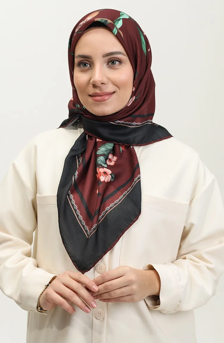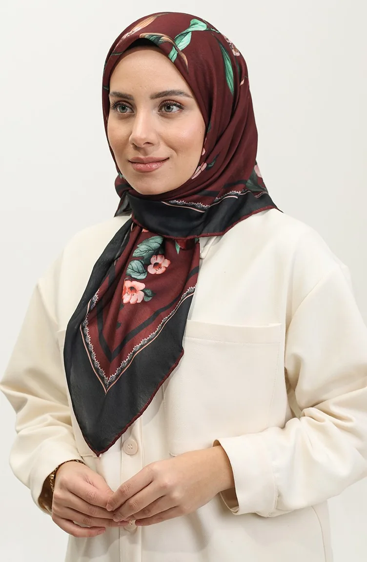 Zachte Sjaal Met Bloemenmotief 2068-01 Donker Bordeauxrood 2068-01
