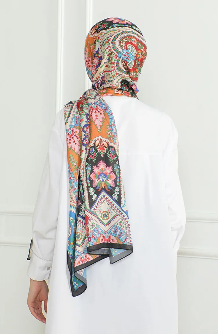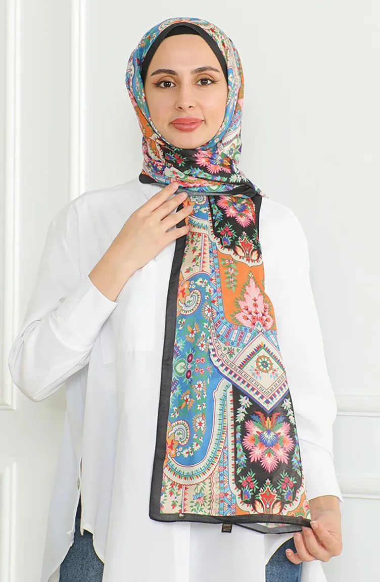 Karaca Zachte Sjaal 81060-15 Zwart Blauw Oranje 81060-15