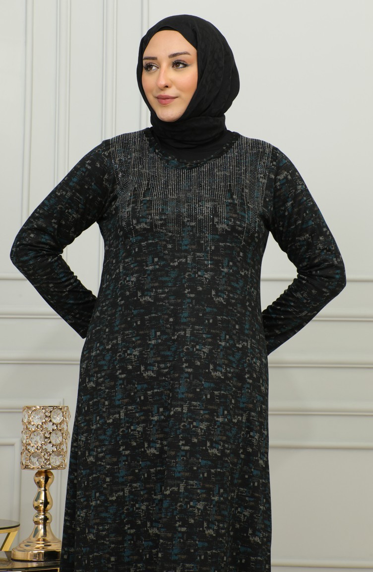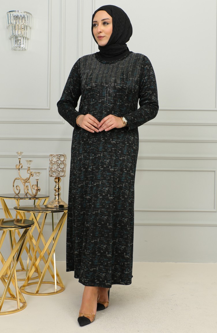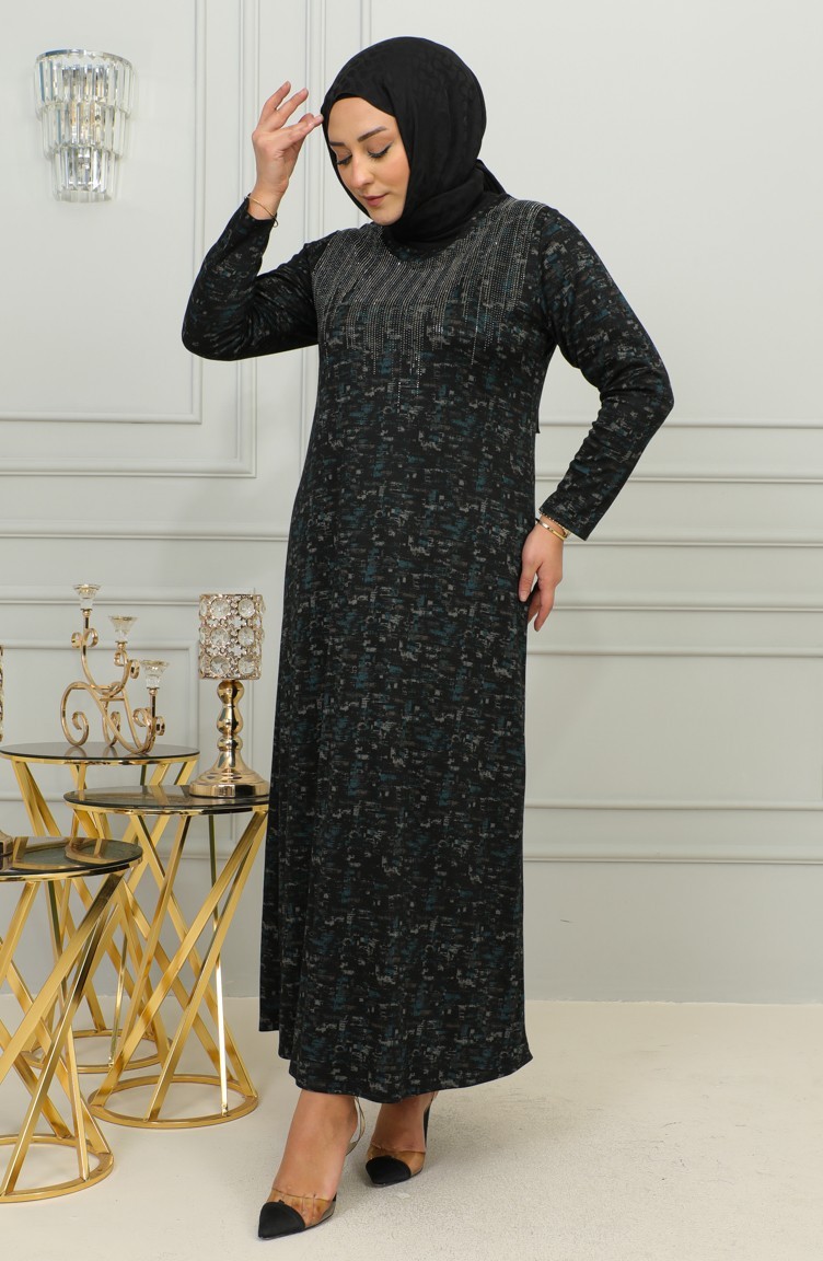 Plus Size Steen Geprinte Jurk 4425C-02 Groen 4425C-02
