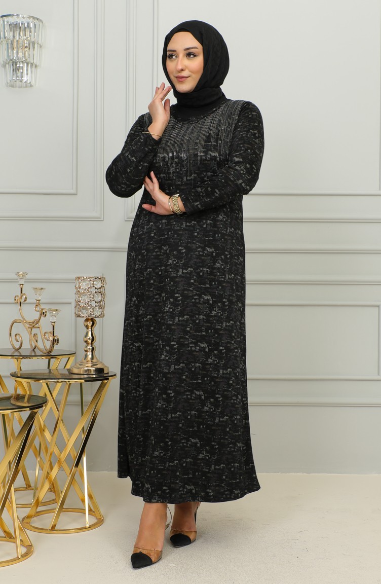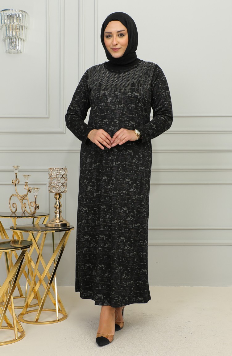 Plus-size Jurk Met Stenenprint En Patroon 4425C-04 Pruim 4425C-04