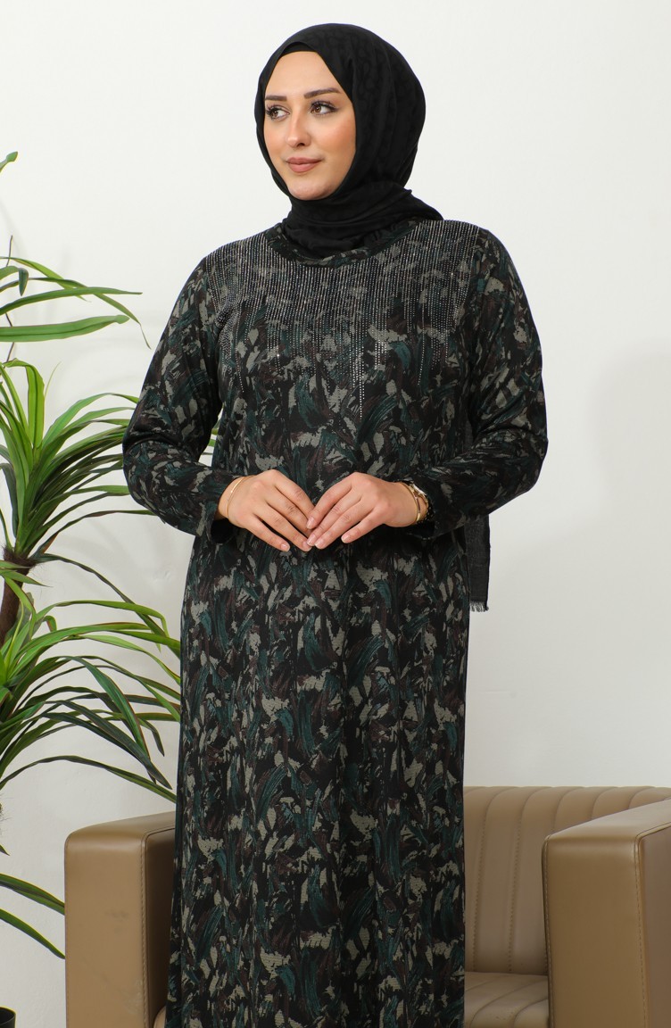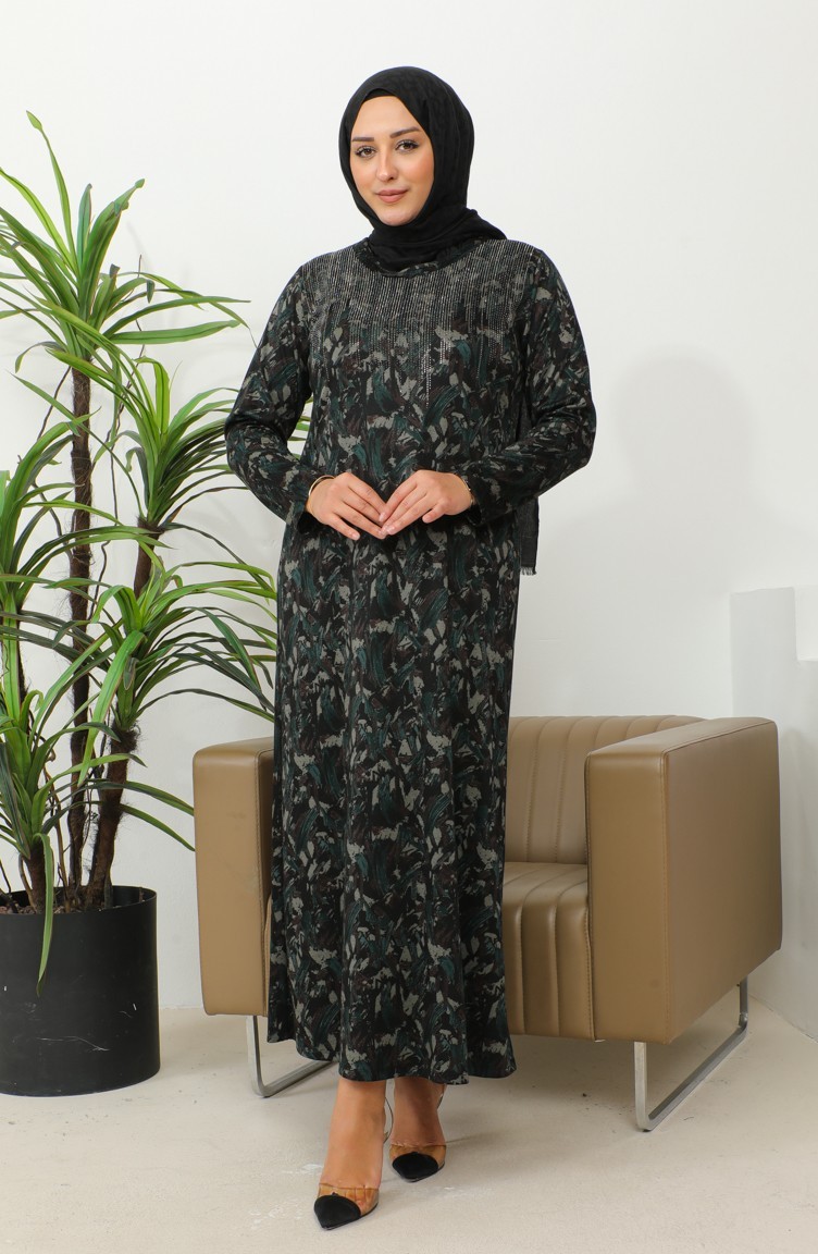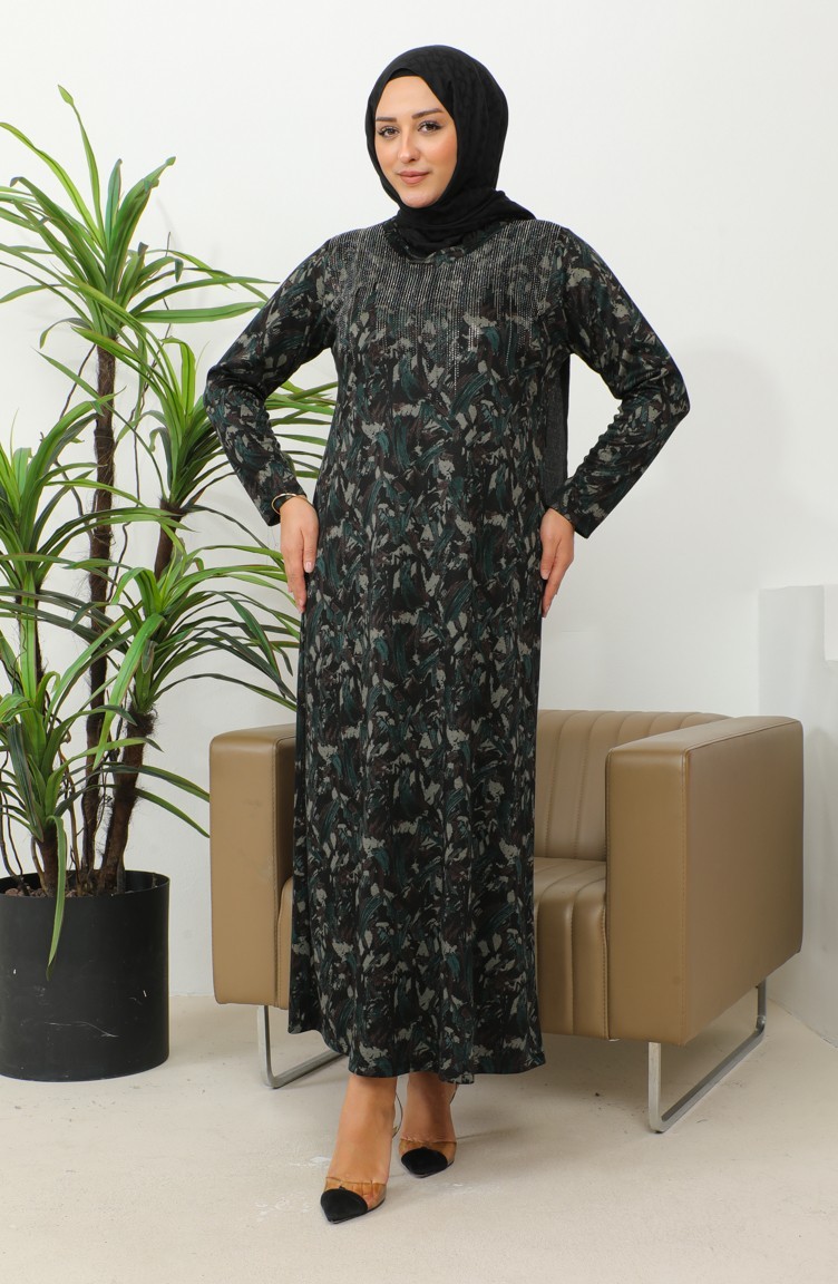 Plus Size Steen Geprinte Jurk 4425B-04 Groen 4425B-04