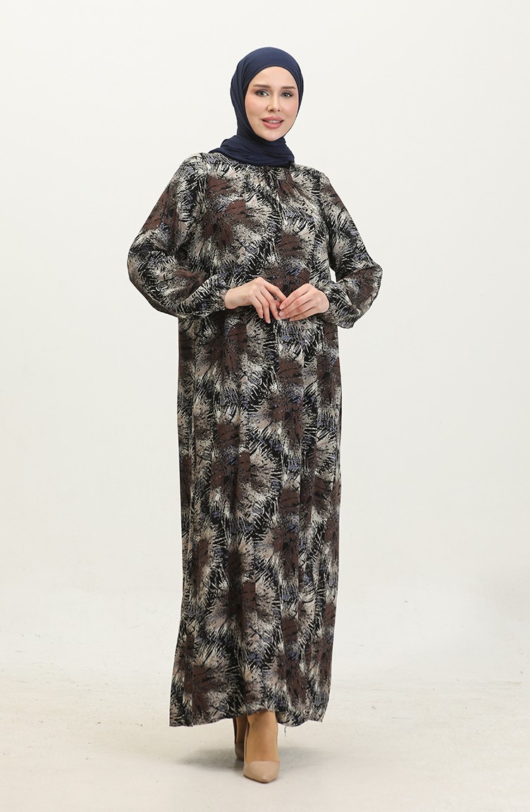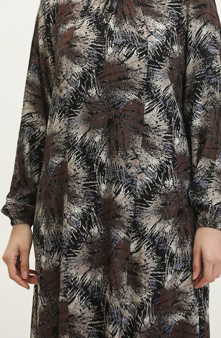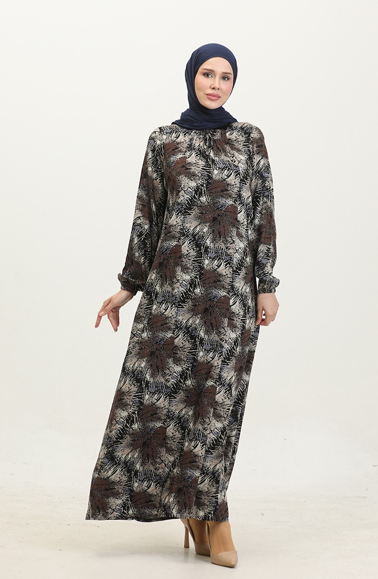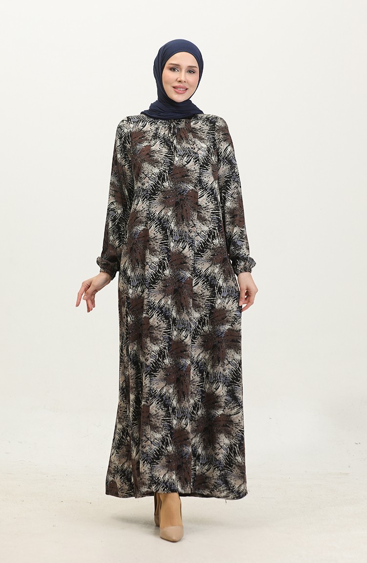 Plus-size Viscose Jurk Met Patroon 44852C-01 Bruin 44852C-01
