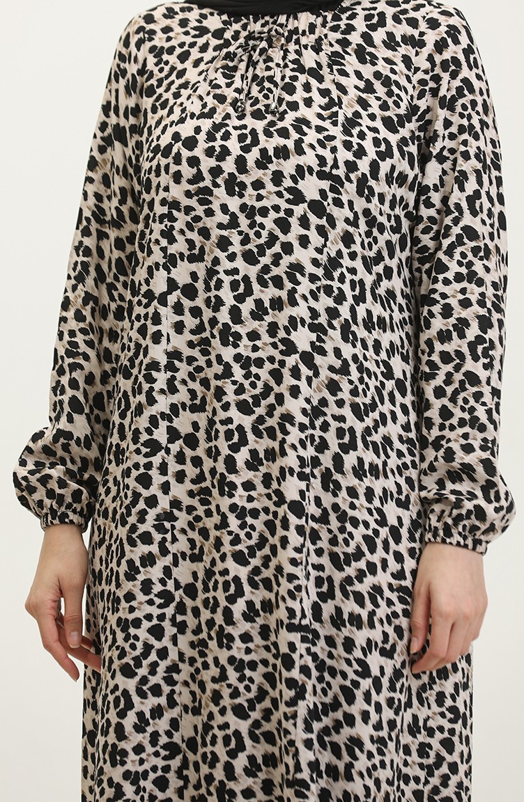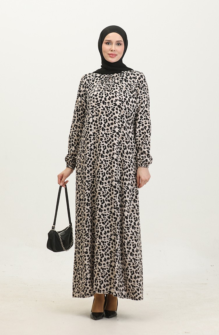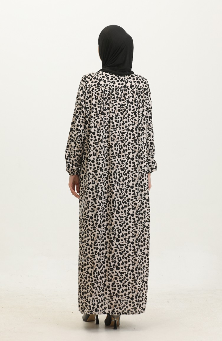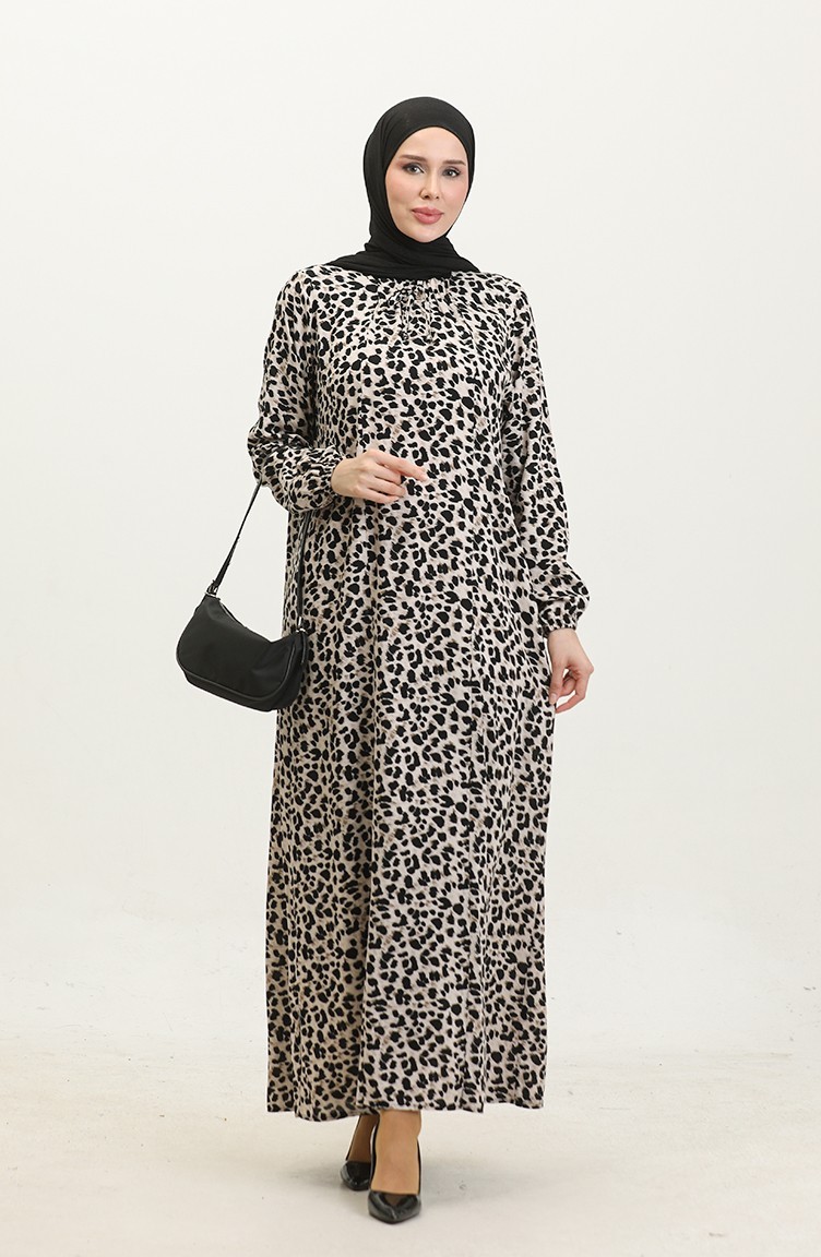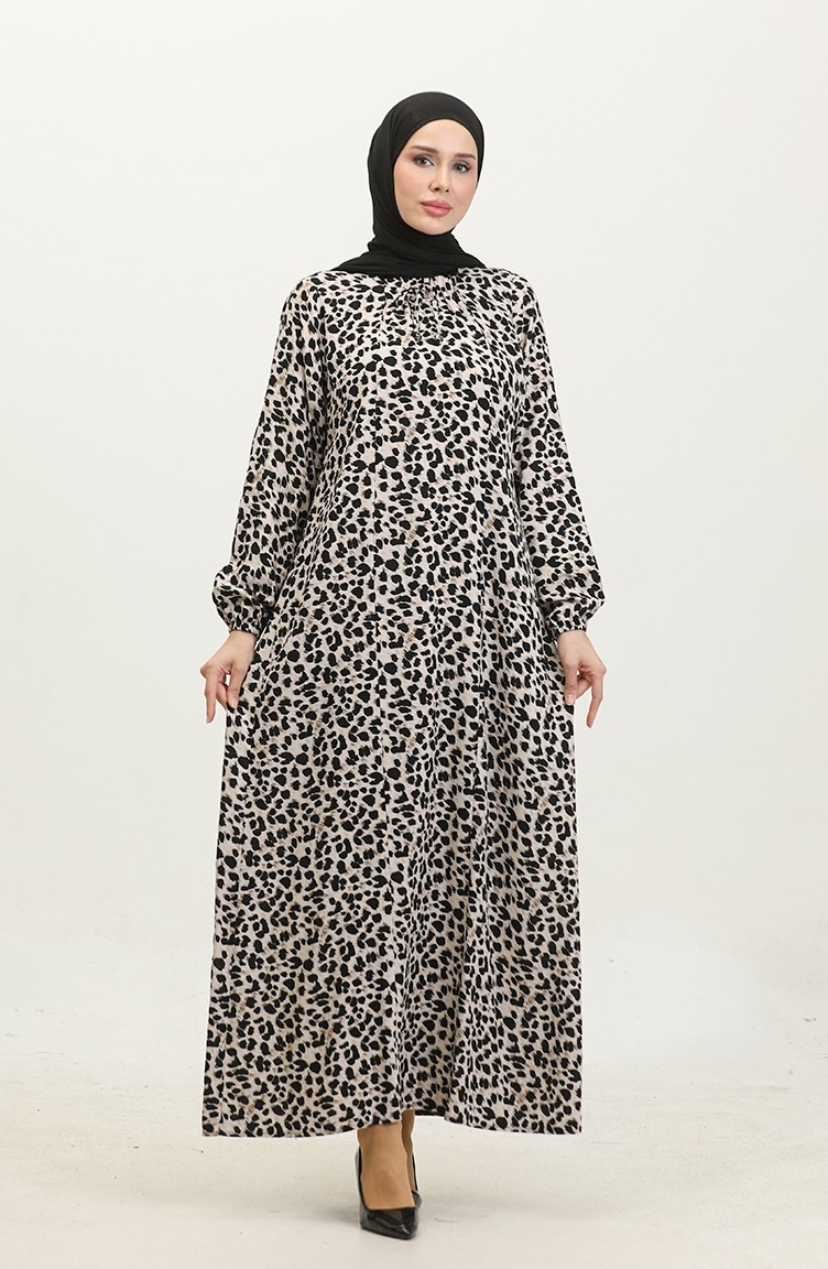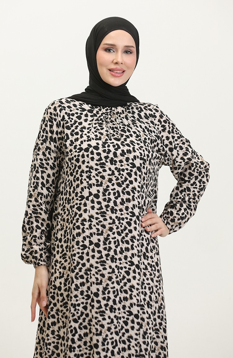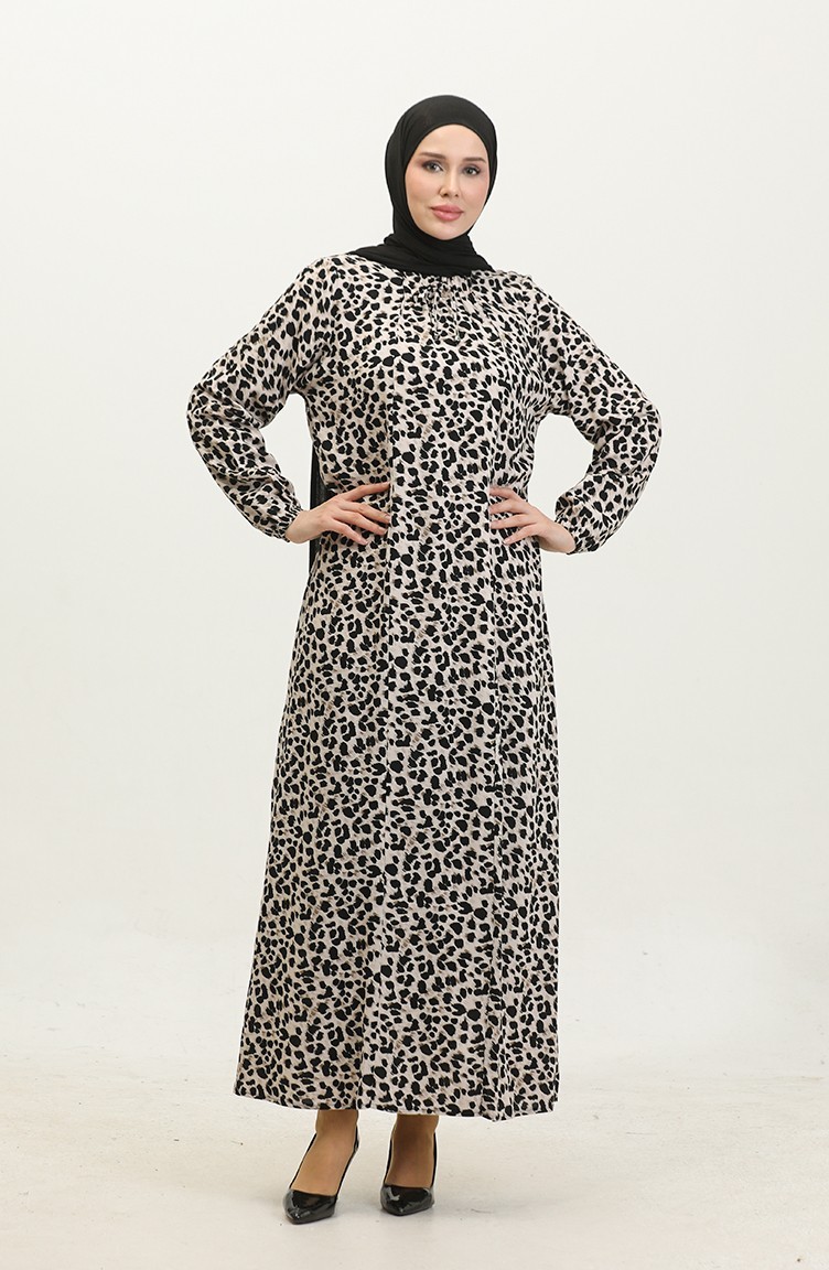 Plus Size Viscose Jurk Met Patroon 44852D-01 Zwart Beige 44852D-01